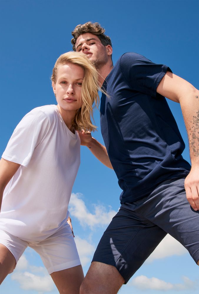Футболка унисекс с боковыми швами из переработанных материалов. Для изготовления каждой футболки переработано 4 бутылки, из которых в последствии была сделана полиэстеровая пряжа.
