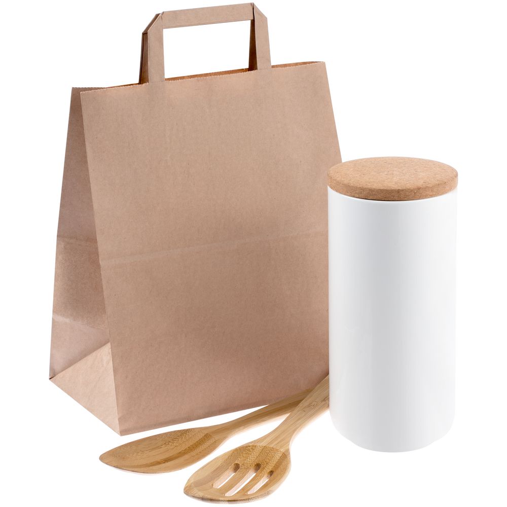 Набор Fusilli — отличный подарок тем, кто любит макароны. Большая банка с плотно прилегающей пробковой крышкой идеальна для хранения макаронных изделий, а бамбуковые лопатки удобны для подачи готовой пасты. Емкость банки 1200 мл. Все составляющие набора поставляются в индивидуальных упаковках.