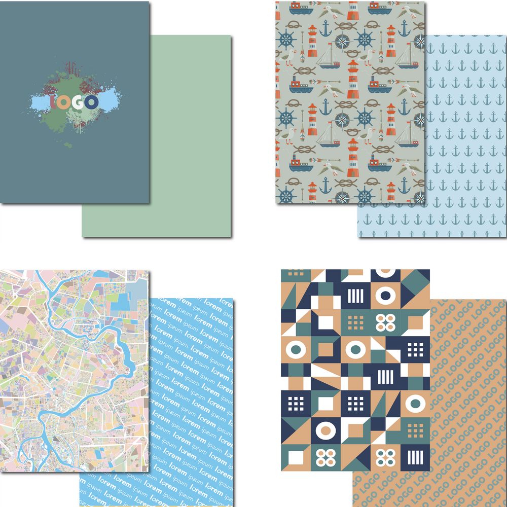 Лицевая сторона может быть с индивидуальным макетом, оборотная — только с паттерном (базовым элементом орнамента, частью узора/логотипом, повторяющимся многократно в художественном оформлении ткани).