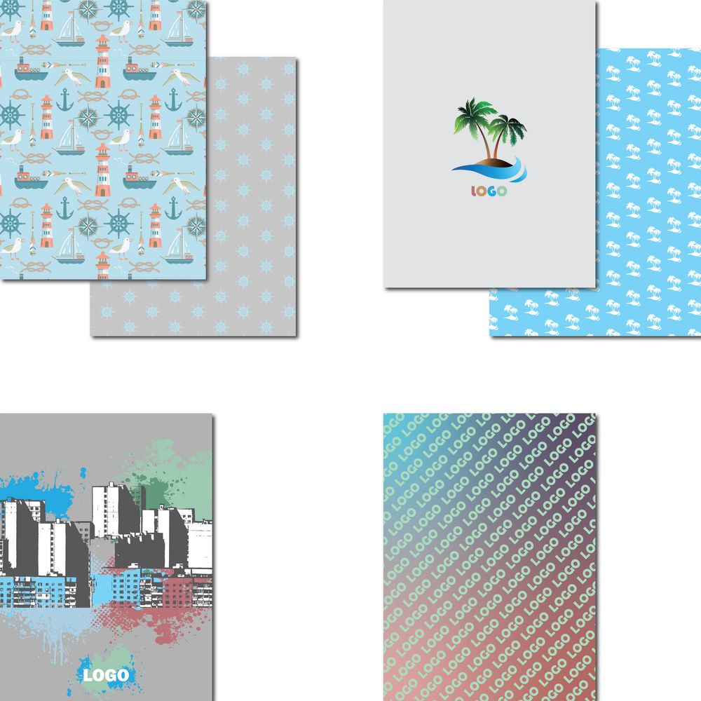 • Лицевая сторона может быть с индивидуальным макетом, оборотная — только с паттерном (базовым элементом орнамента, частью узора/логотипом, повторяющимся многократно в художественном оформлении ткани).