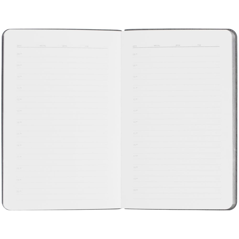 Ежедневник с гибкой обложкой выполнен из материала Soft Touch Ultra, голубой JJ и серого Latte (внутренняя часть обложки). Внутри корешка — специальное место для крепления ручки размером до 15х0,9 см.