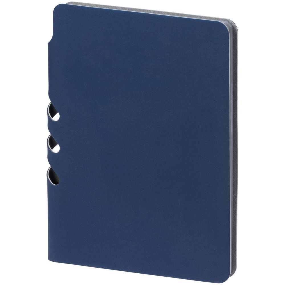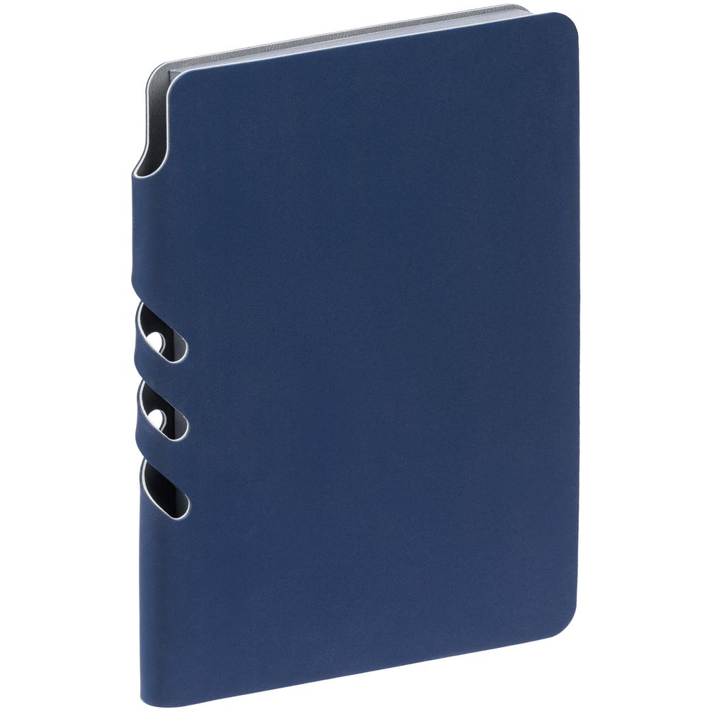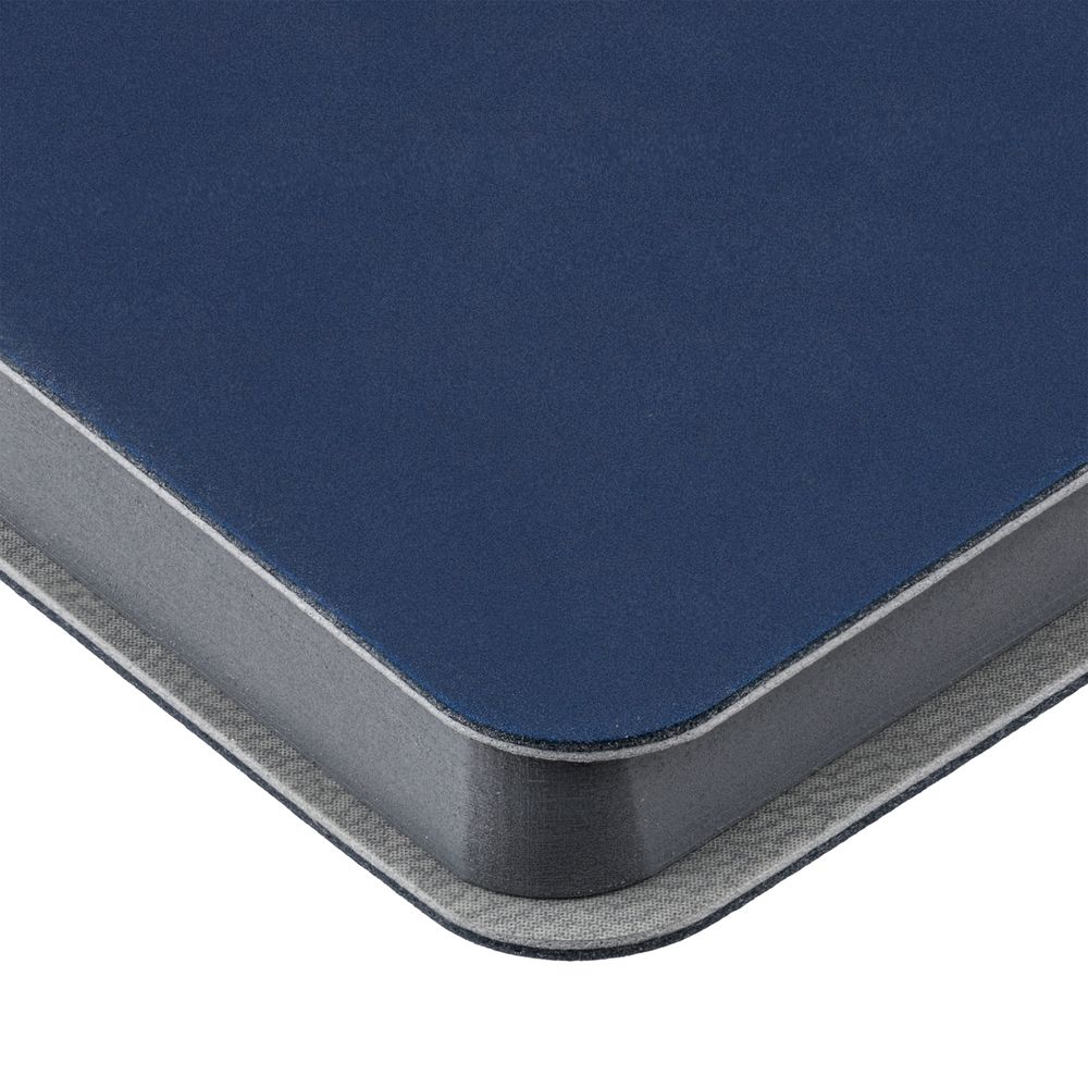 Ежедневник с гибкой обложкой выполнен из материала Soft Touch Pearl, синий НН и серого Latte (внутренняя часть обложки). Внутри корешка — специальное место для крепления ручки размером до 15х0,9 см.