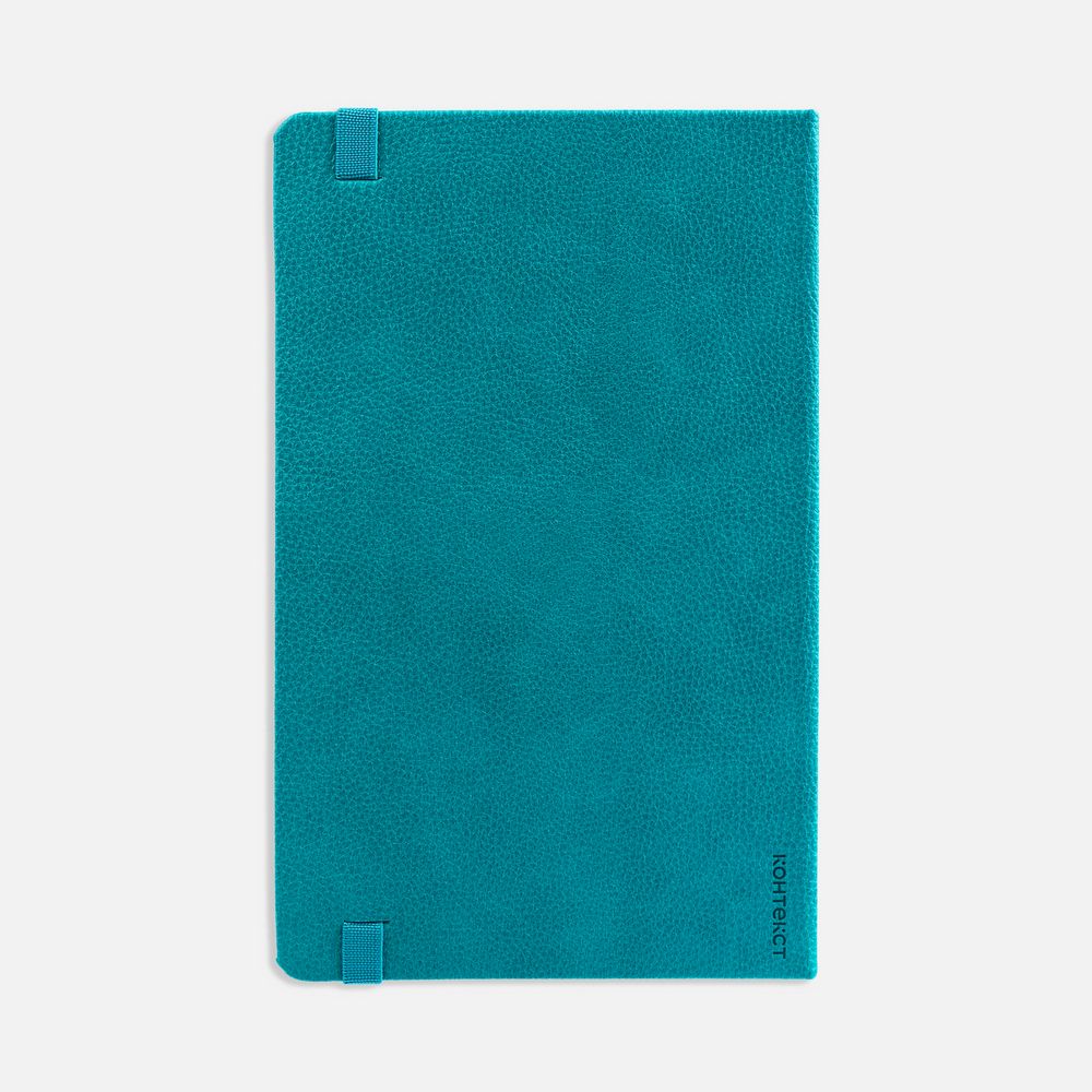 Ежедневник с твердой обложкой, выполнен из материала LaFite, цвет морской волны II, дополнен резинкой с металлическим круглым шильдом и ляссе в цвет обложки.