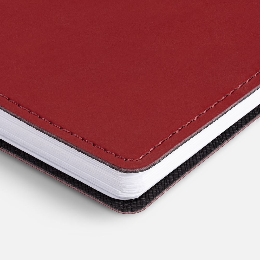 Ежедневник с гибкой обложкой, выполнен из материалов Soft Touch, красный РР и Nice Touch, черный АА.