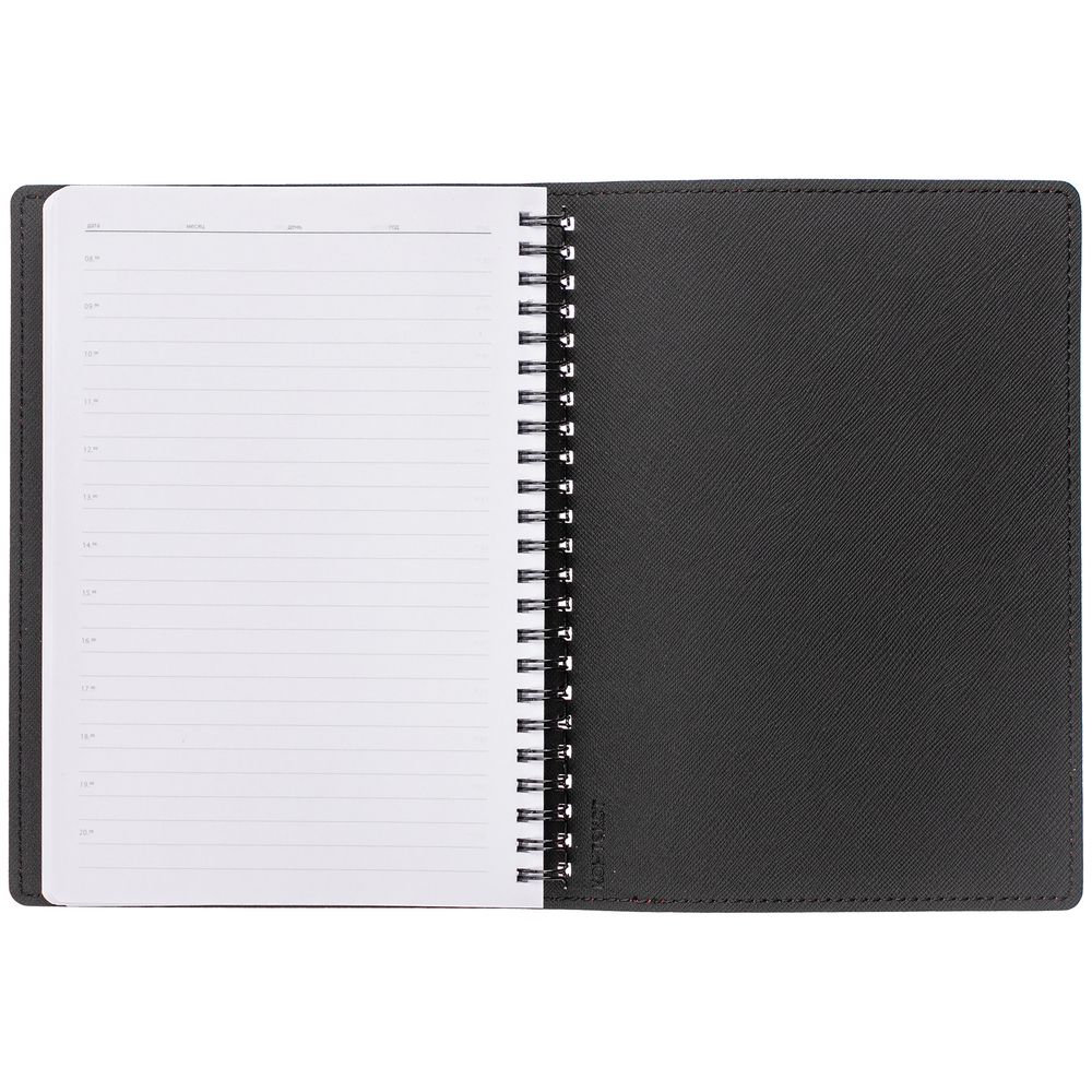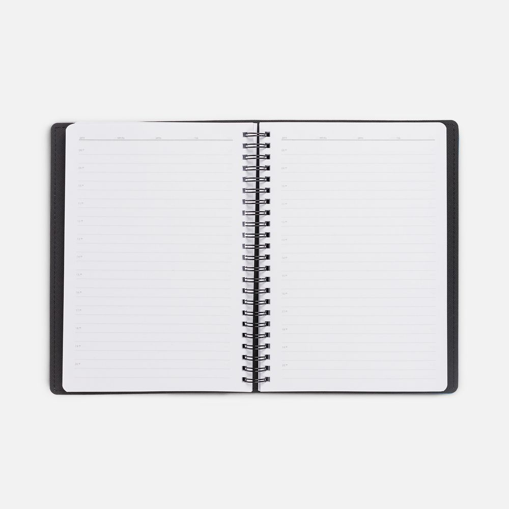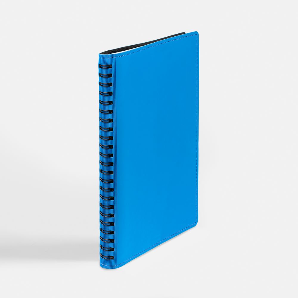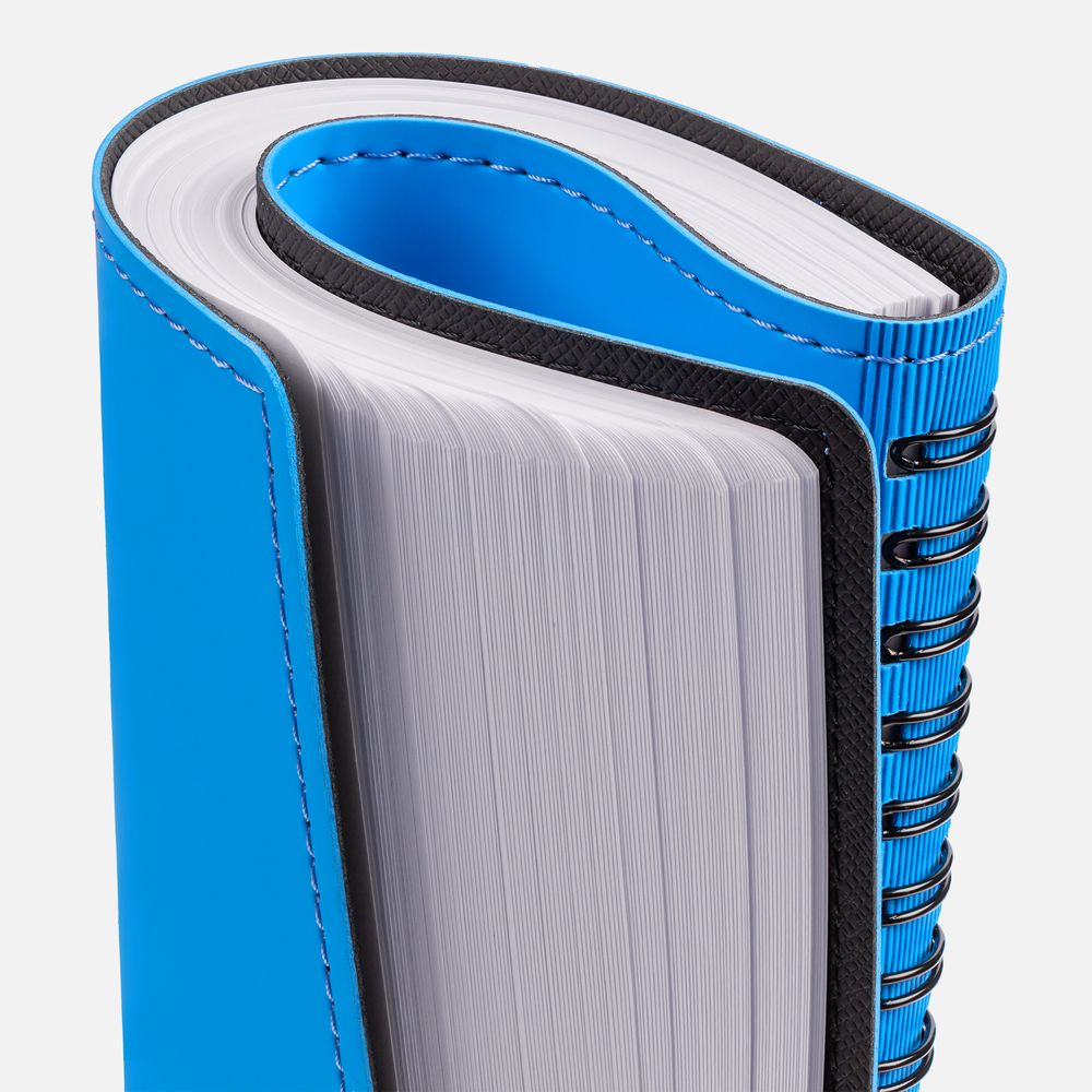Ежедневник с гибкой обложкой, выполнен из материалов Soft Touch Ultra, голубой JJ и Nice touch, черный АА.