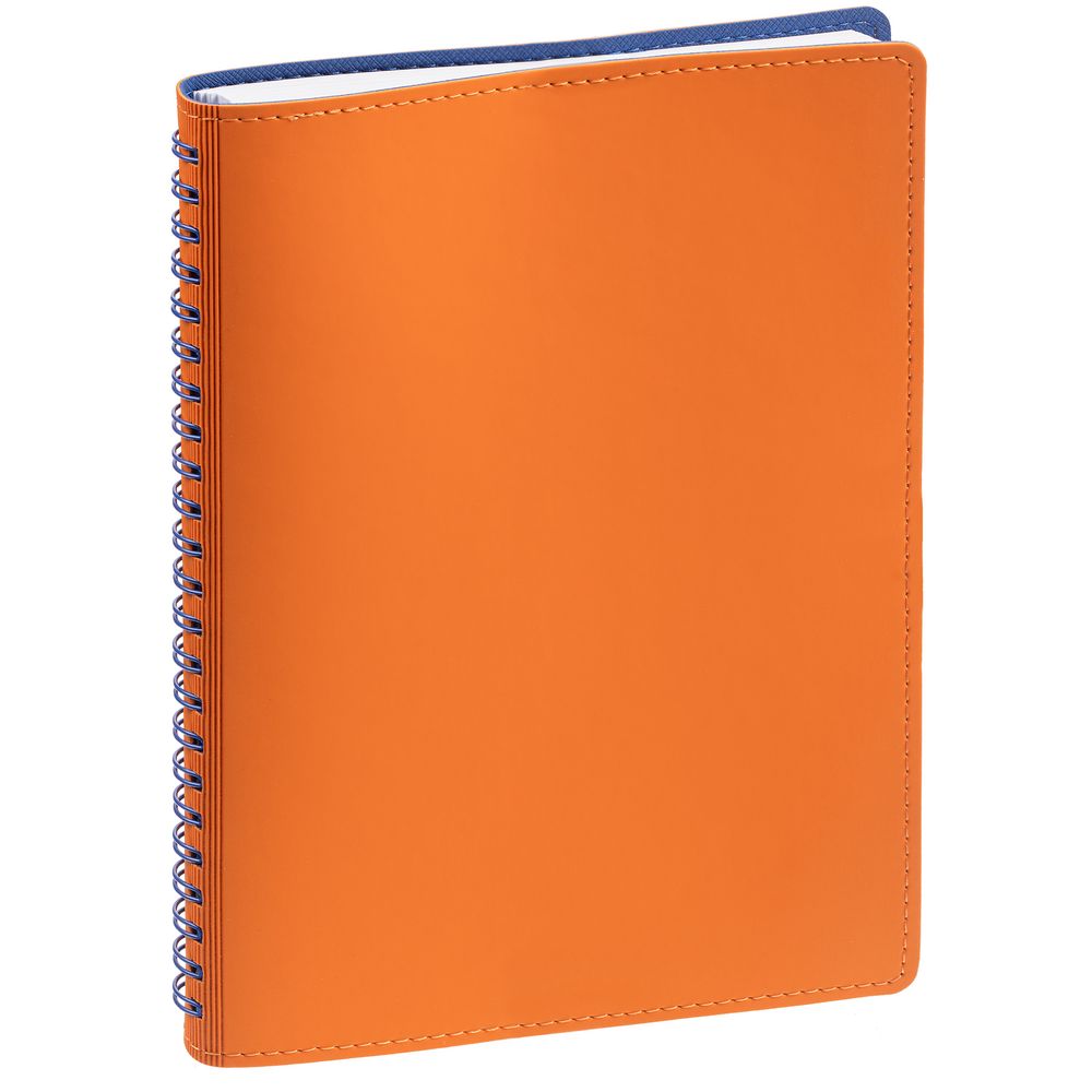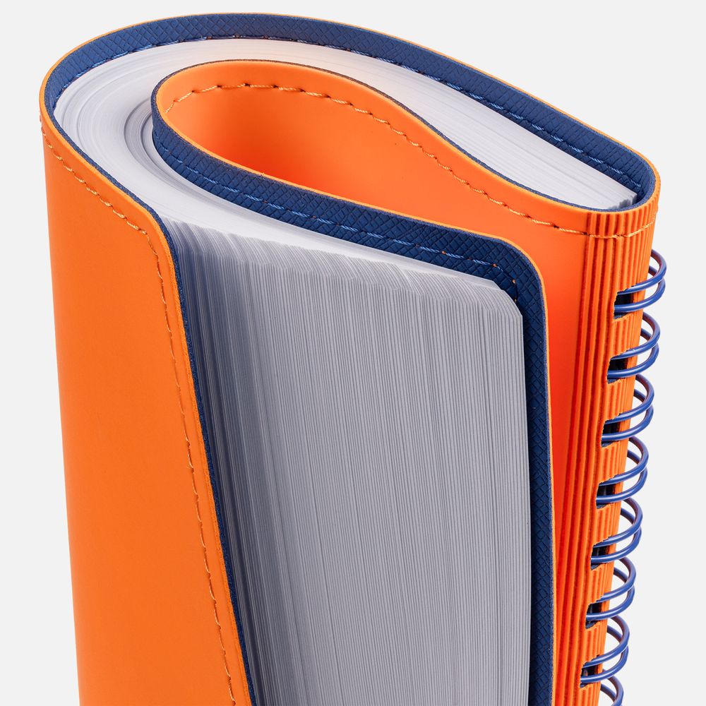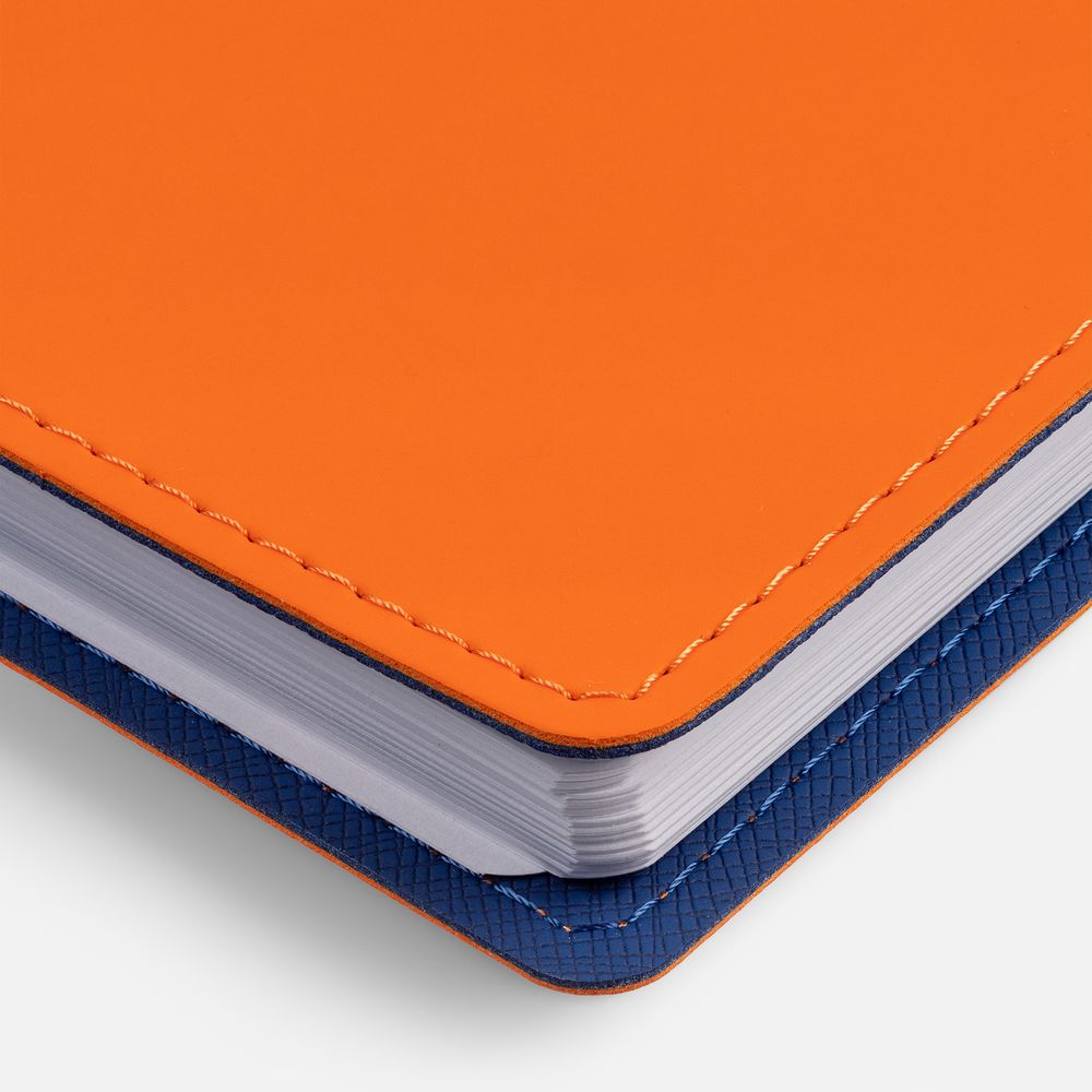 Ежедневник с гибкой обложкой, выполнен из материалов Soft Touch, оранжевый ОО и Nice Touch, синий НН.