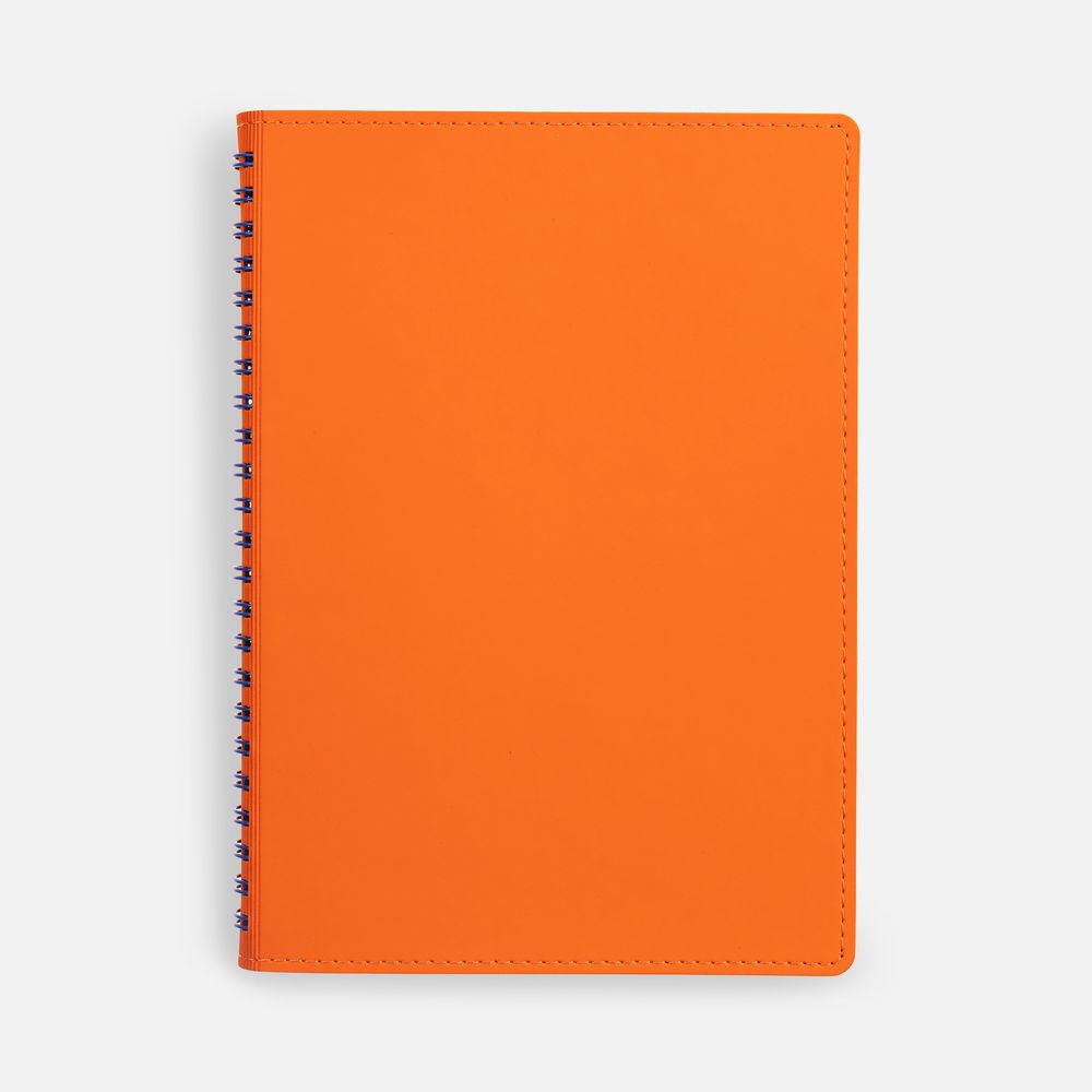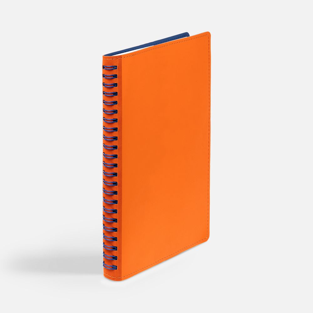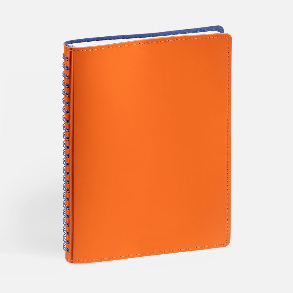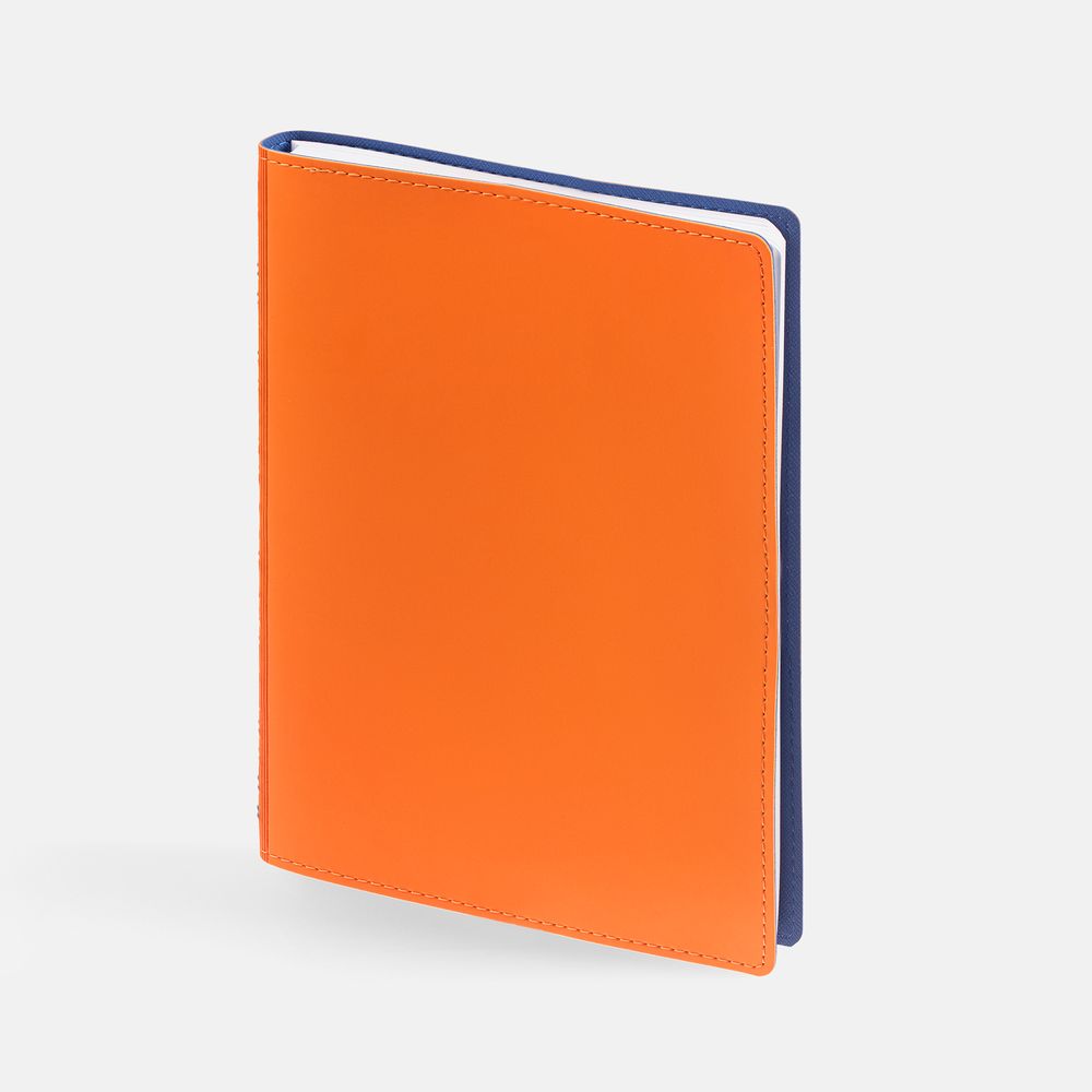 Ежедневник с гибкой обложкой, выполнен из материалов Soft Touch, оранжевый ОО и Nice Touch, синий НН.