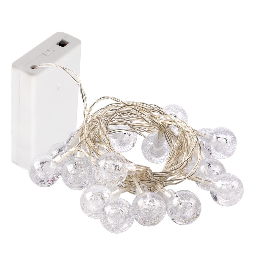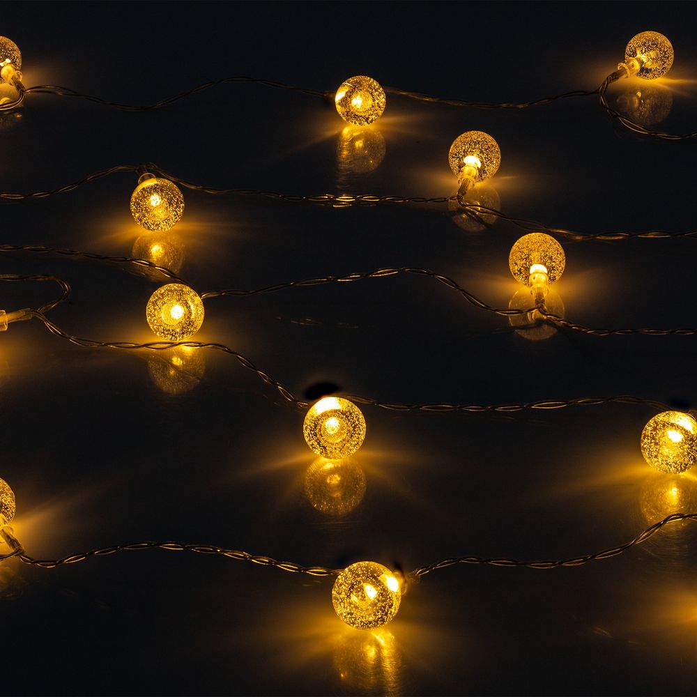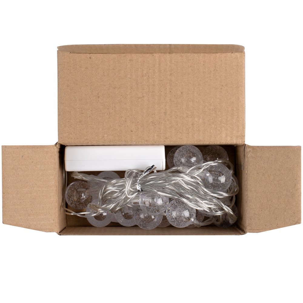 Гирлянда состоит из 20 светодиодов с теплым светом. Работает на 3 батарейках типа АА (в комплект не входят). Предназначена для использования в помещении.