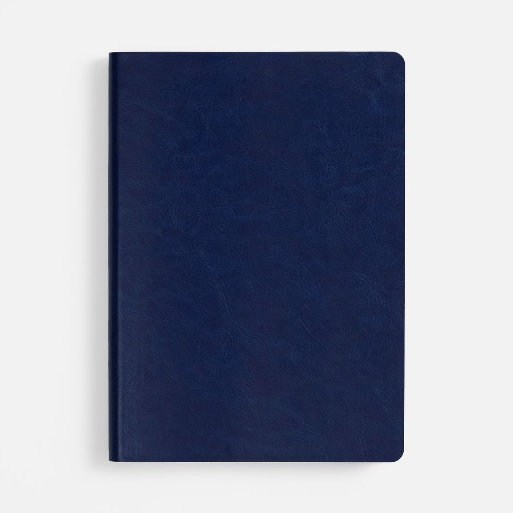 Модная интерпретация статусного ежедневника — с металлизированным обрезом и гибкой обложкой. Ежедневник с гибкой обложкой, выполнен из материала Nebraska, синий HH, дополнен ляссе темно-синего цвета.
