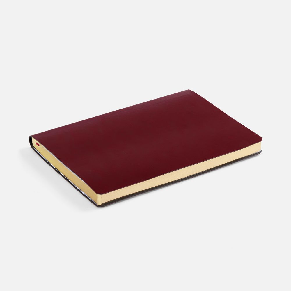 Модная интерпретация статусного ежедневника — с металлизированным обрезом и гибкой обложкой. Ежедневник с гибкой обложкой, выполнен из материала Nebraska, винный SS, дополнен ляссе бордового цвета.