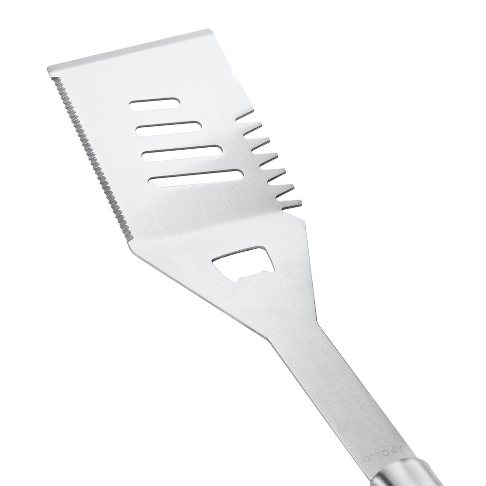 Лопатка Ribeye предназначена для переворачивания продуктов на гриле, мангале или жаровне. Прорези позволяют стекать излишкам масла, соуса или жидкостей. Рабочая часть лопатки изготовлена из нержавеющей стали и выдерживает высокие температуры. Изделие имеет оптимальную длину для безопасного использования, рукоятку с противоскользящим покрытием и петлю для подвешивания. Поставляется без индивидуальной упаковки.