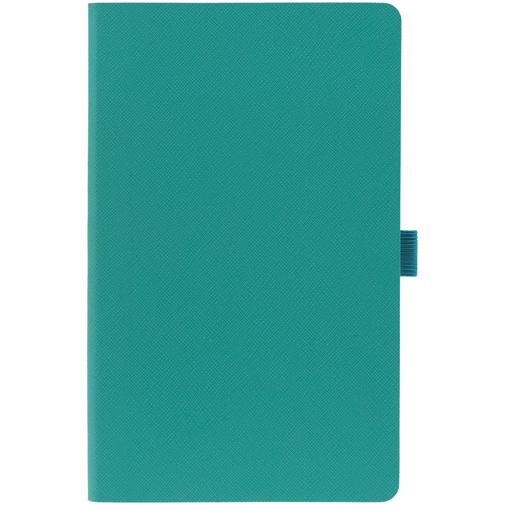 Ежедневник с гибкой обложкой, выполнен из материала Nice Touch, морская волна II, дополнен цветными ляссе и петлей-резинкой для ручки.