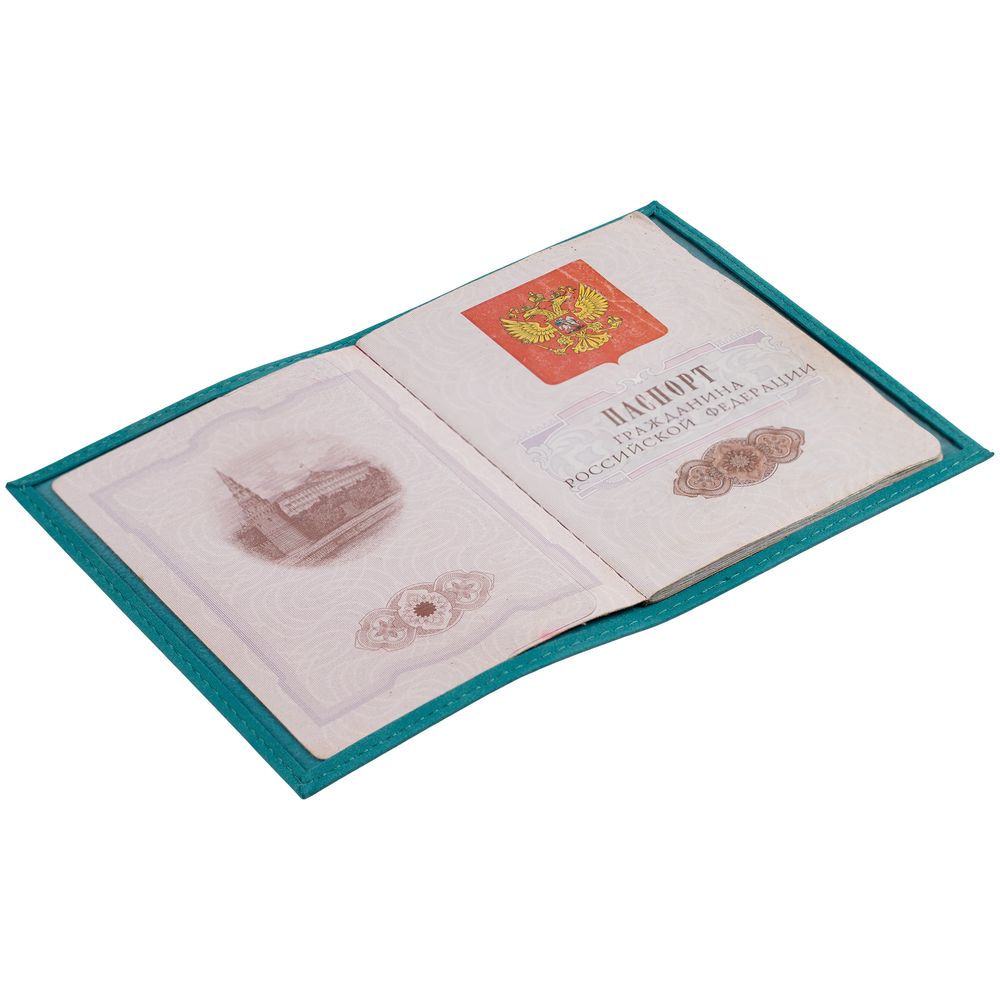 Обложка для паспорта Nubuk, бирюзовая