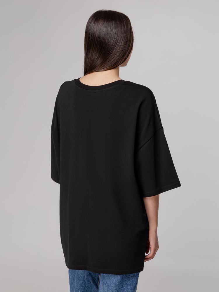 Объемная кроеная футболка с удлиненным рукавом из гребенного хлопка с эластаном не стесняет движений и создает модный расслабленный силуэт.