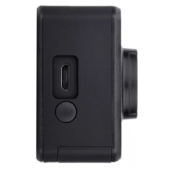 Экшн-камера выполнена в корпусе из качественного пластика, устойчивого к различным внешним воздействиям. Для подключения на корпусе есть выходы HDMI и USB. Управление может осуществляться при помощи мобильного приложения.