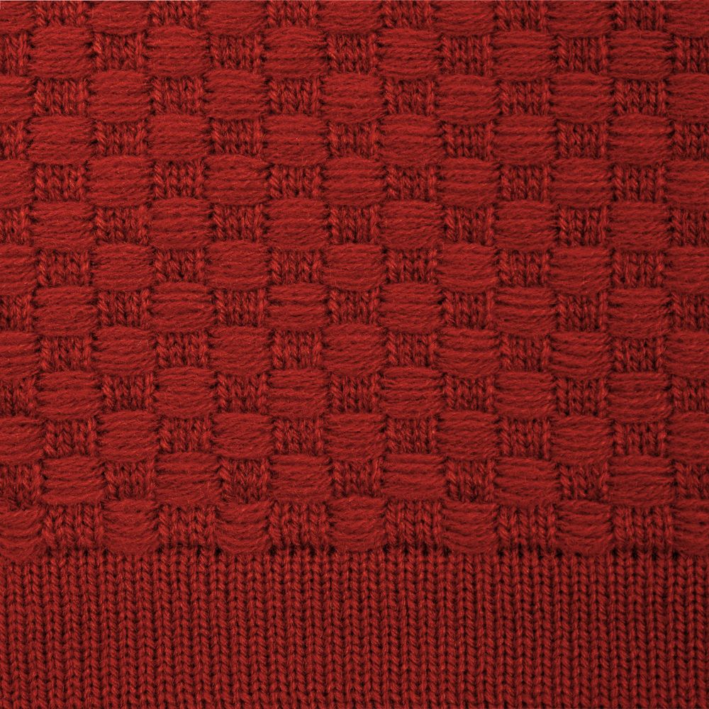 Однотонный плед рельефной вязки.