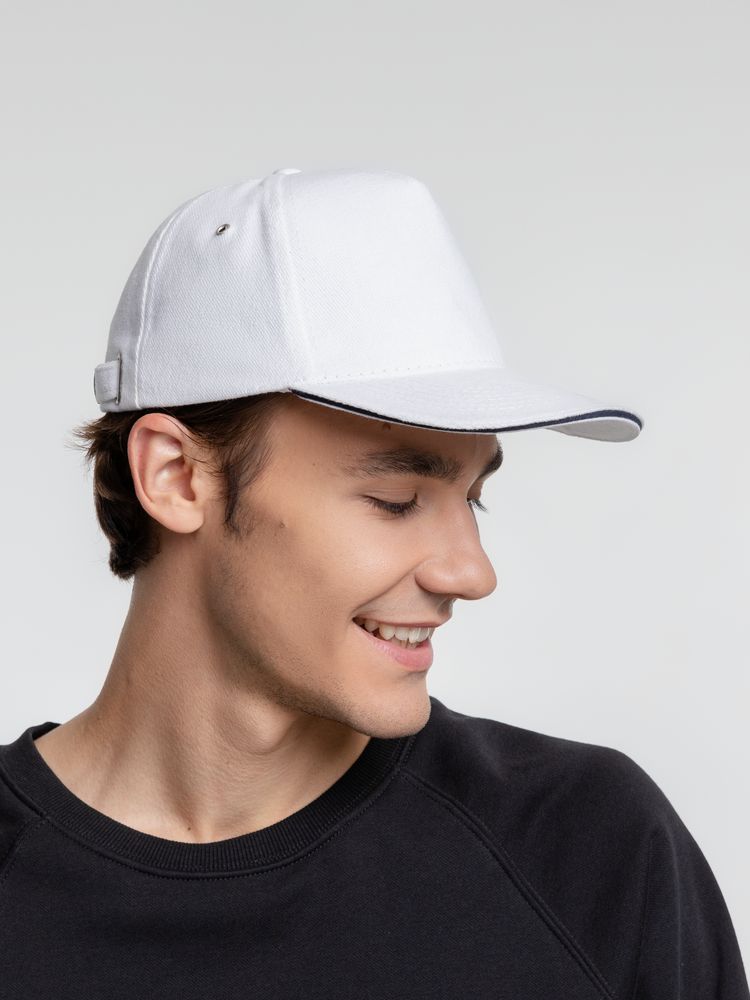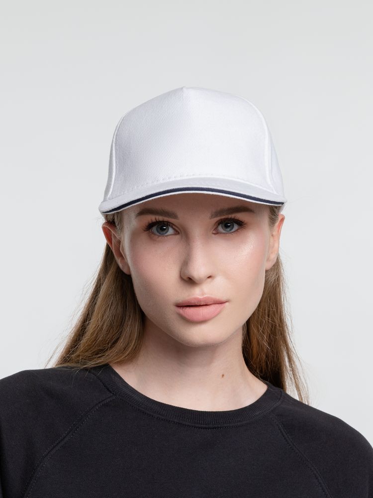 Бейсболка Classic, белая с темно-синим кантом
