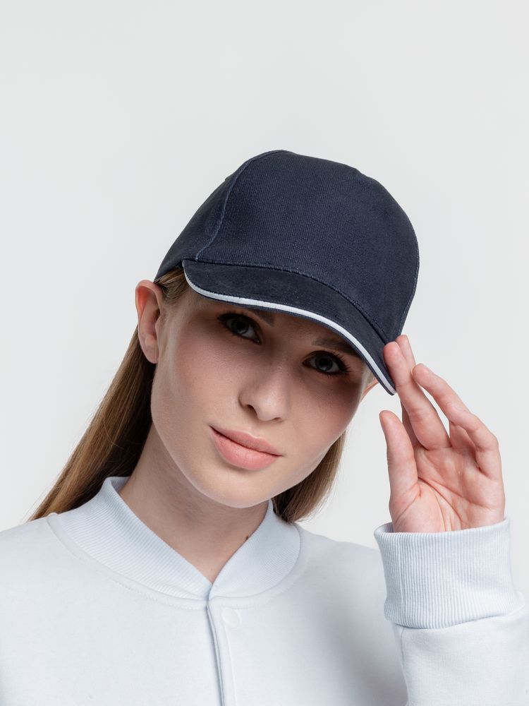 Бейсболка Classic, темно-синяя с белым кантом