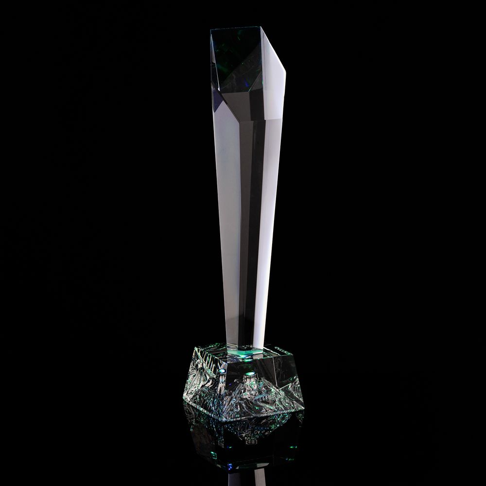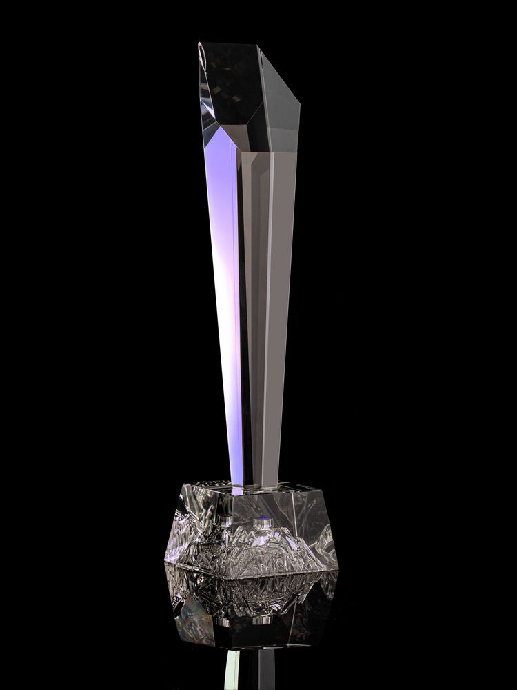 Шестигранная стела с разноцветной подсветкой изготовлена из кристалла К9, в основе которого лежит оптическое боросиликатное стекло. Эту марку стекла отличает низкий процент посторонних включений, высокий показатель преломления и высокая прозрачность — идеальные качества для изготовления наград премиального уровня.