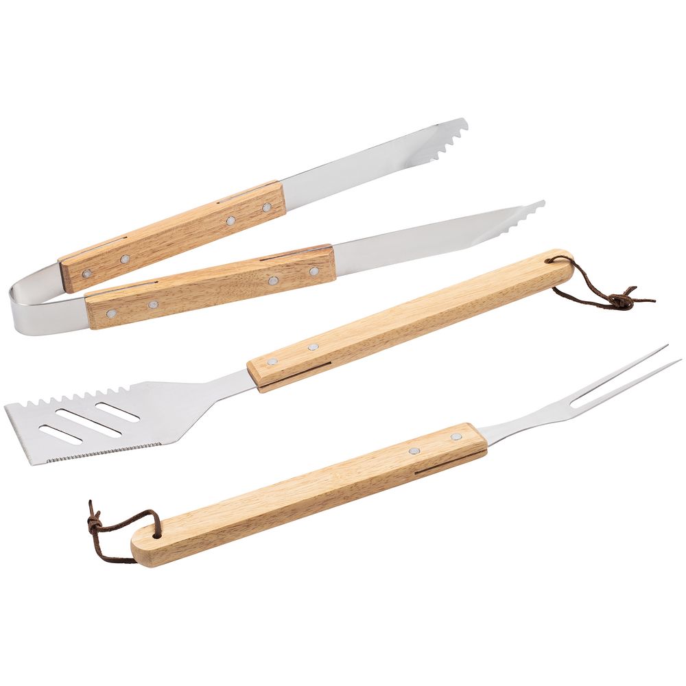 С надежными инструментами для барбекю No Misteak не грозит столкнуться с какой-либо ошибкой в приготовлении мяса — с ними удобно управляться, а значит, и еда получается вкуснее. Деревянные ручки не нагреваются — и на них хорошо ложится гравировка, а прочный полированный металл легко моется и не деформируется при работе с горячими продуктами и поверхностями.В набор входят: щипцы, вилка и лопатка. Поставляется в картонной коробке.