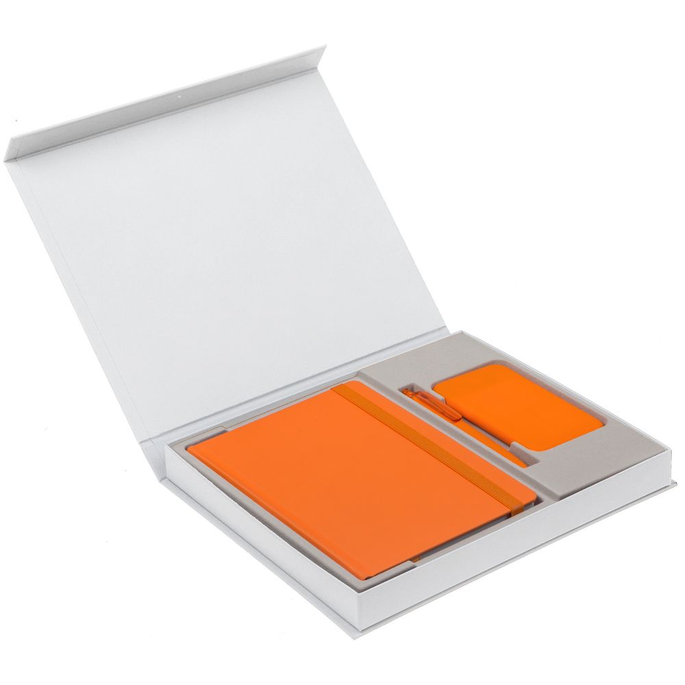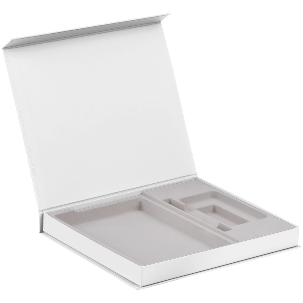 Подарочная коробка из переплетного картона, кашированного дизайнерской софт-тач бумагой Senzo, с крышкой на магните и съемным ложементом. Подходит для ежедневника 15х21х2,2 см, аккумулятора 12,3х7х1 см и ручки 14х1,3 см.