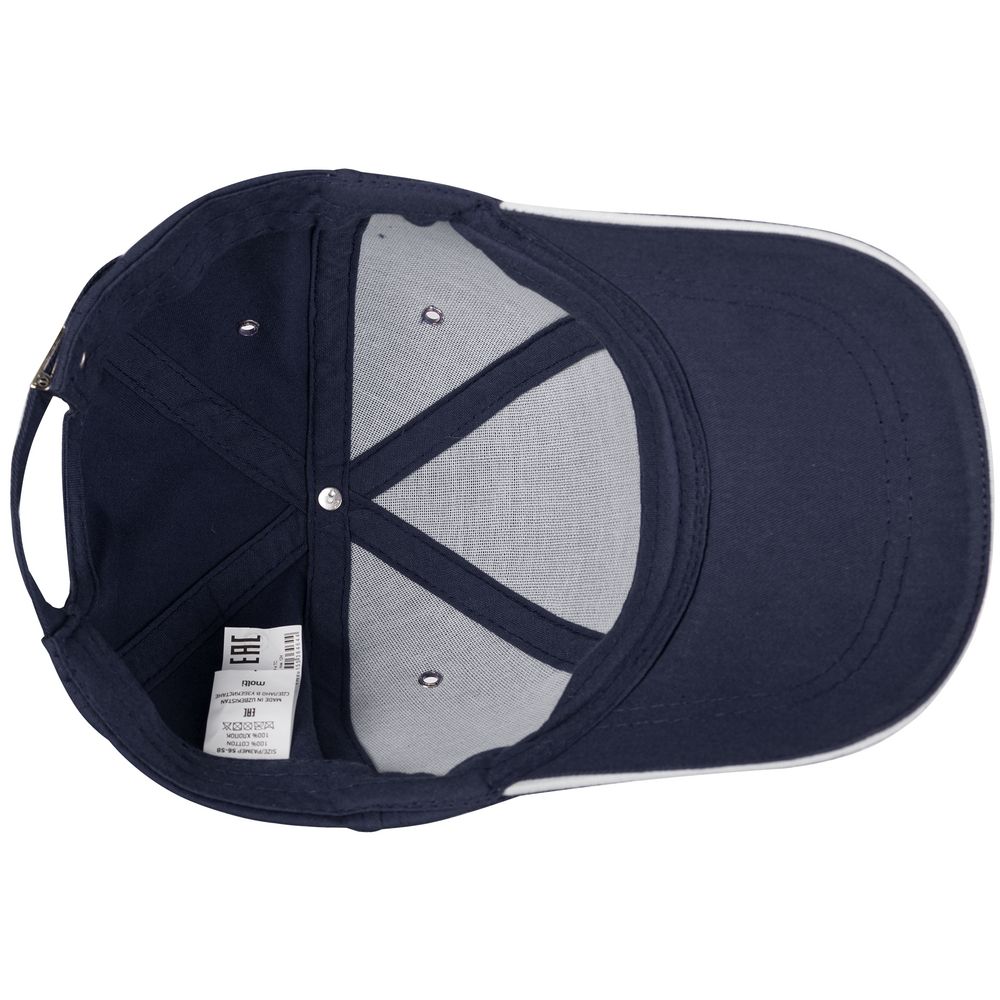 Бейсболка Canopy, темно-синяя с белым кантом