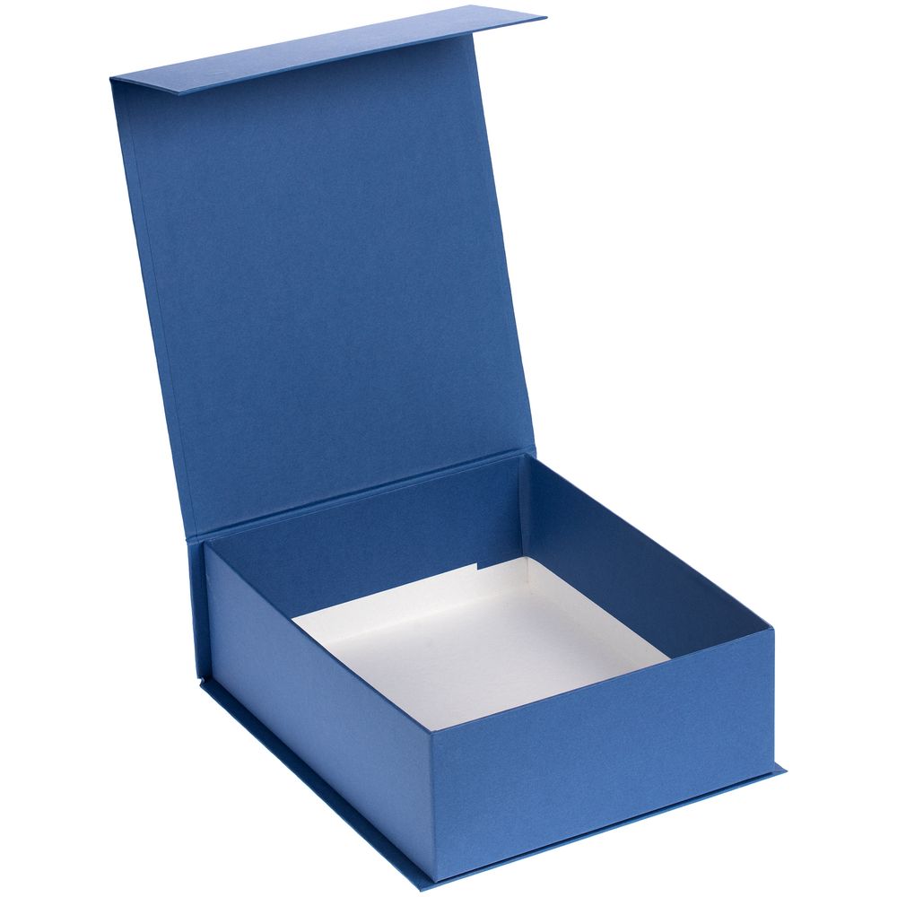 Изготовлена из переплетного картона, снаружи кашированного гладкой дизайнерской бумагой Malmero «Скандинавский синий», с крышкой на магните.
