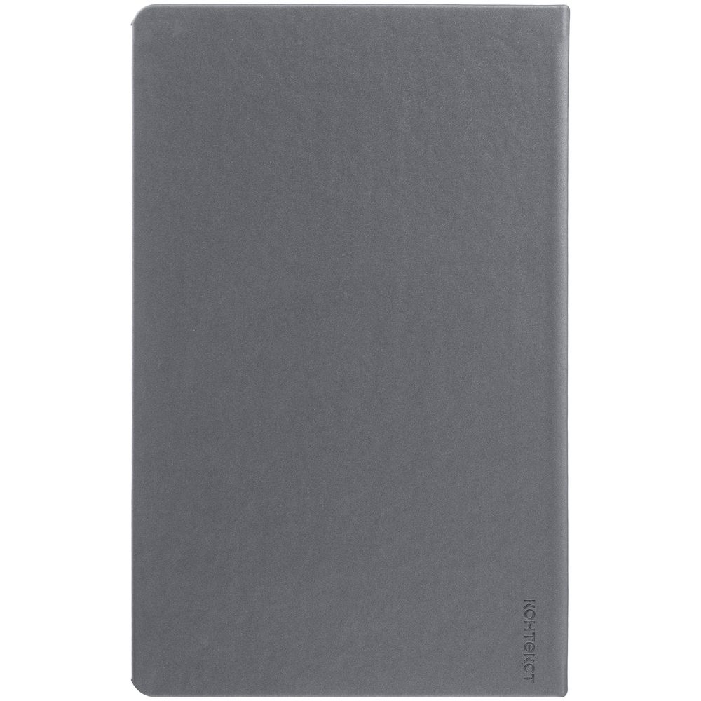 Ежедневник в твердой обложке, выполненной из материала Soft Touch Pearl, серый СС, дополнен цветным ляссе и магнитом, удерживающим ручку.