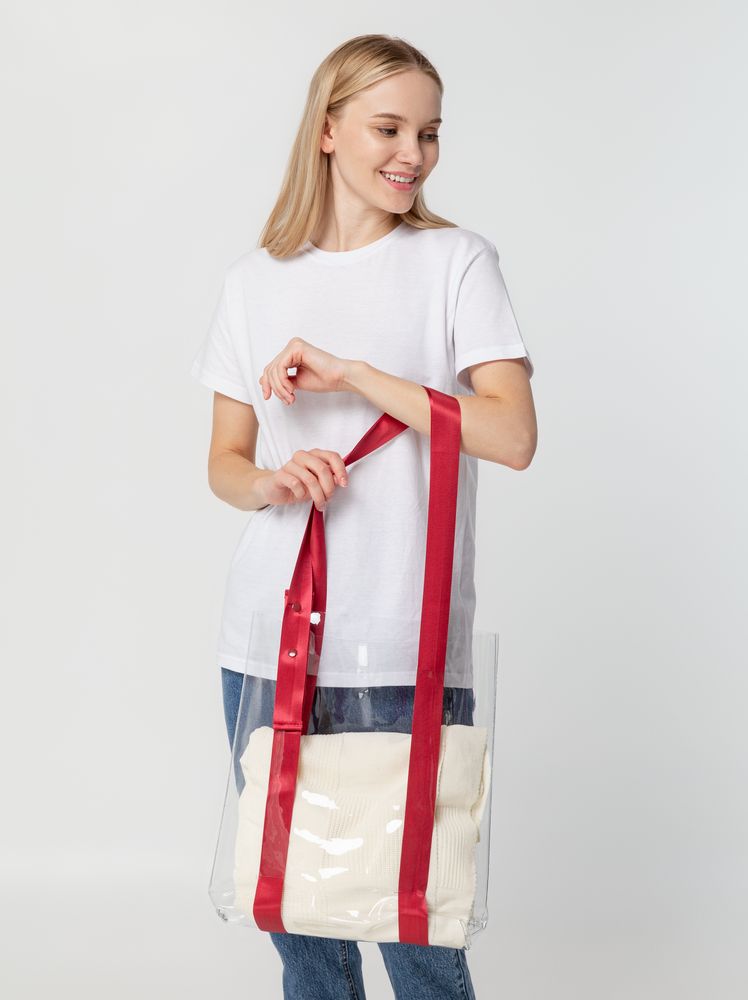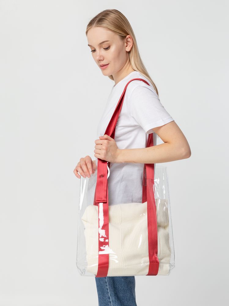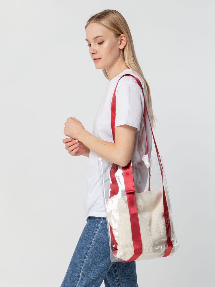 Прозрачные сумки никогда не выйдут из моды. А цветные ручки легко впишутся в брендбук и точно передадут настроение, которое хотелось бы транслировать. Шопер из ПВХ не промокает, легко чистится и выглядит стильно в любое время года и при любой погоде. Емкость 11 литров. Выдерживает нагрузку до 3 кг.
