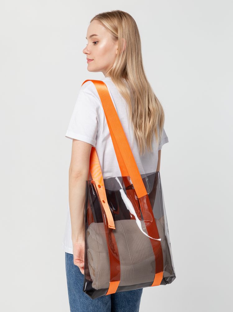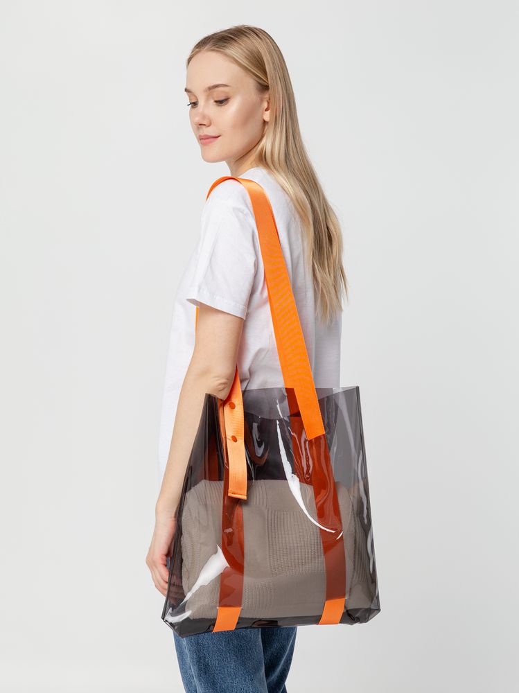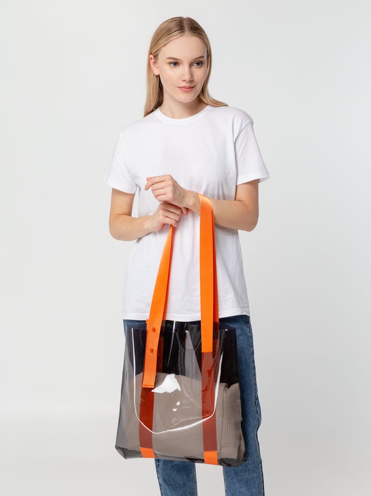 Прозрачные сумки никогда не выйдут из моды. А цветные ручки легко впишутся в брендбук и точно передадут настроение, которое хотелось бы транслировать. Шопер из ПВХ не промокает, легко чистится и выглядит стильно в любое время года и при любой погоде. Емкость 11 литров. Выдерживает нагрузку до 3 кг.