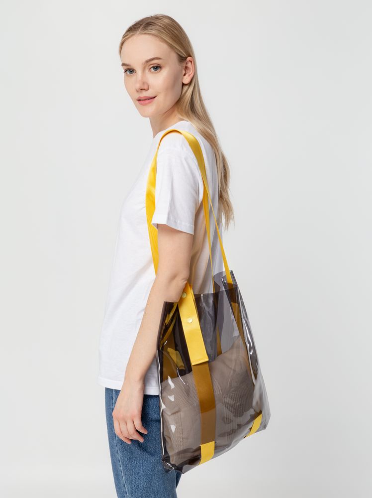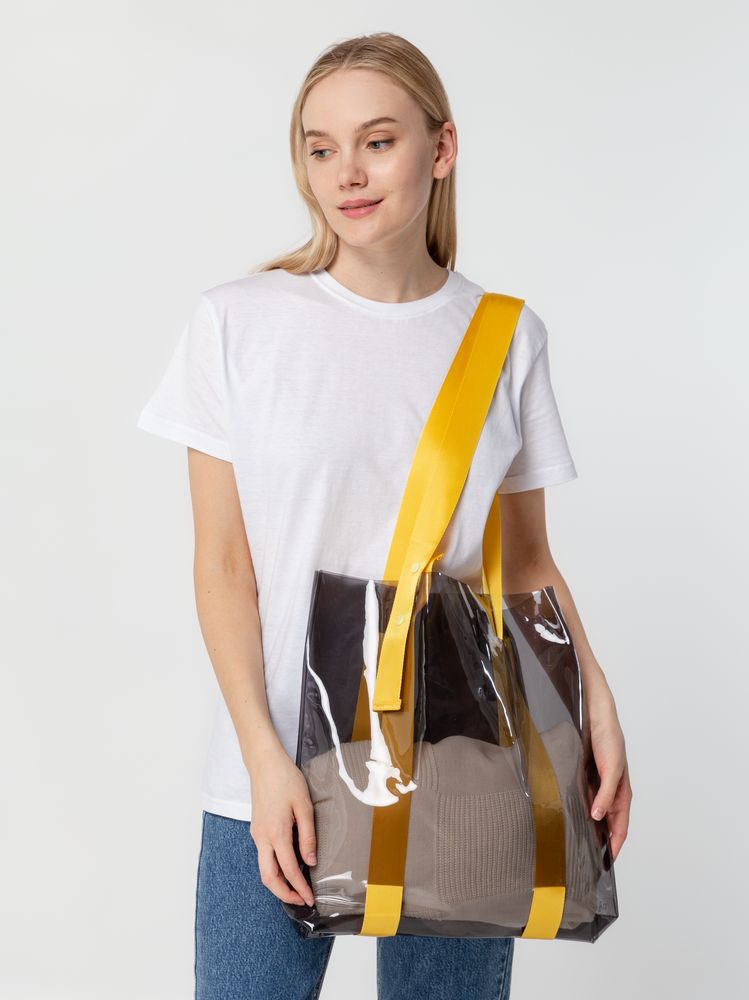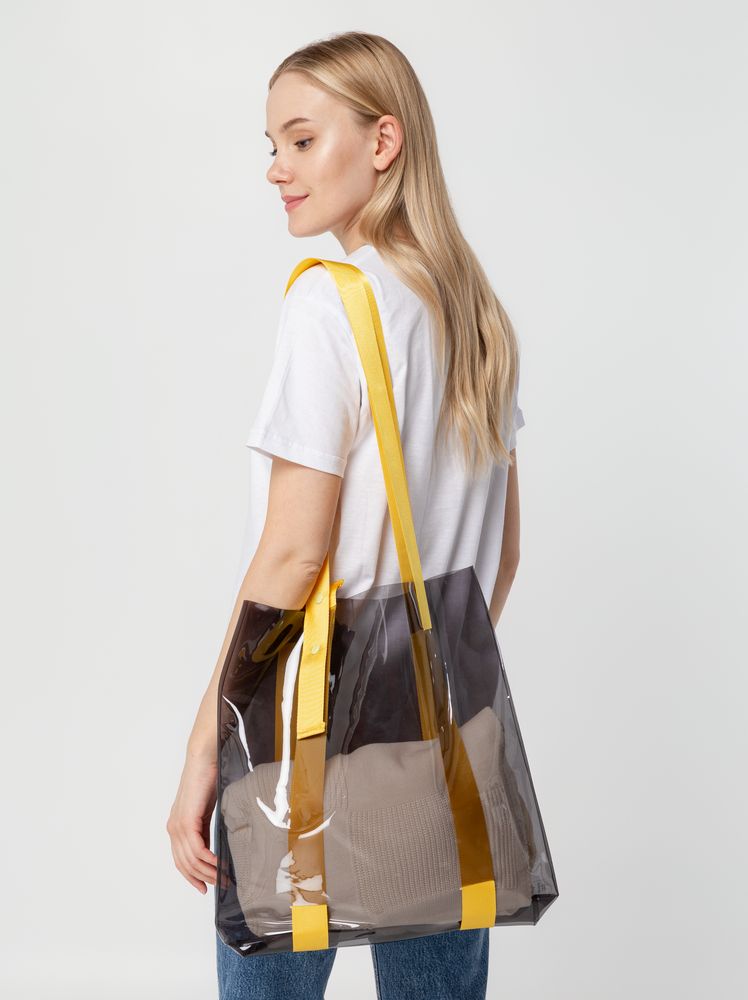 Прозрачные сумки никогда не выйдут из моды. А цветные ручки легко впишутся в брендбук и точно передадут настроение, которое хотелось бы транслировать. Шопер из ПВХ не промокает, легко чистится и выглядит стильно в любое время года и при любой погоде. Емкость 11 литров. Выдерживает нагрузку до 3 кг.