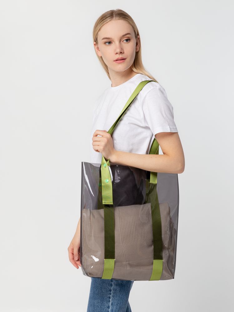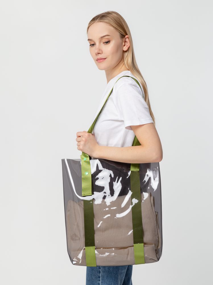 Прозрачные сумки никогда не выйдут из моды. А цветные ручки легко впишутся в брендбук и точно передадут настроение, которое хотелось бы транслировать. Шопер из ПВХ не промокает, легко чистится и выглядит стильно в любое время года и при любой погоде. Емкость 11 литров. Выдерживает нагрузку до 3 кг.