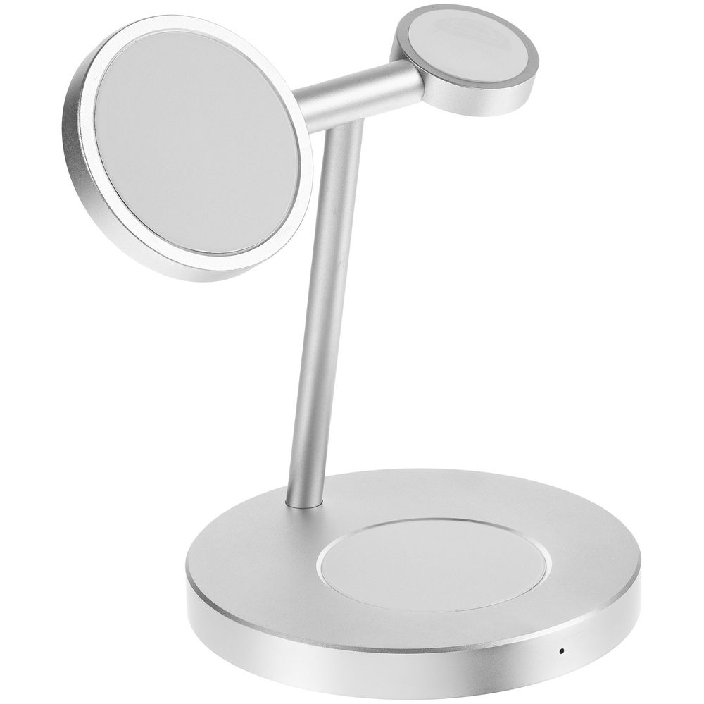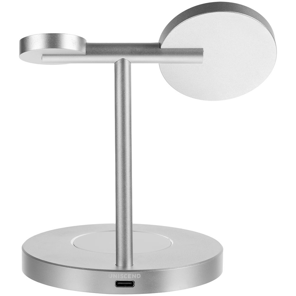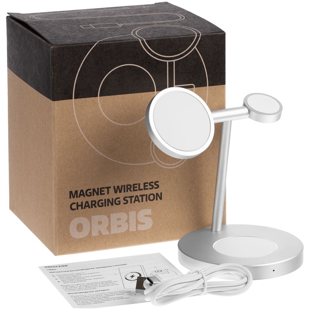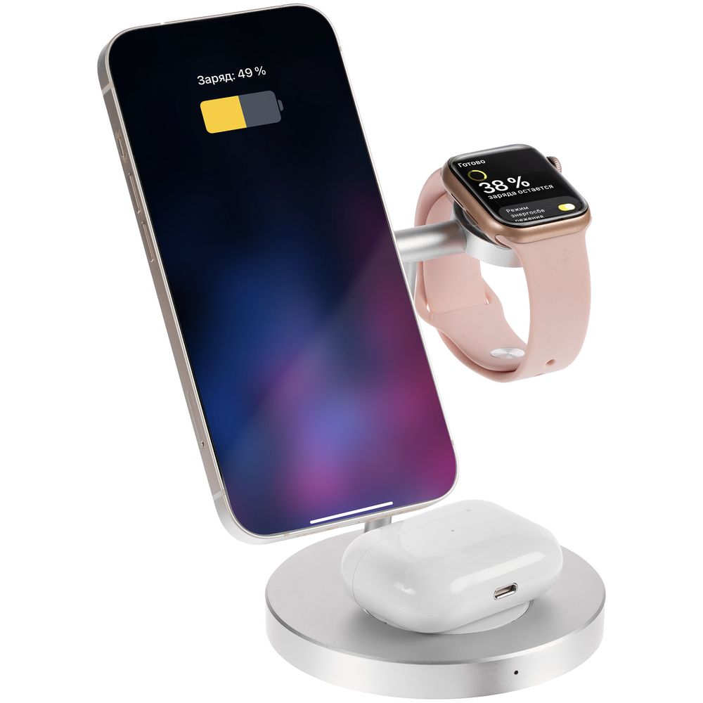 Футуристичный дизайн металлической конструкции с первого взгляда превращает магнитную зарядную станцию Orbis из утилитарного девайса в ценный объект современного дизайна. Станция может заряжать одновременно 3 устройства: беспроводные наушники с соответствующей функцией беспроводного заряда, смартфон, часы Apple Watch 2–8. Смартфоны iPhone 12–15 удерживаются на станции встроенными в их корпус магнитами. Прочие телефоны рекомендуем дополнить магнитным стикер-адаптером Magmate для надежного удержания на зарядной области.