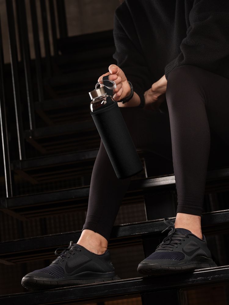 Легкое и прочное боросиликатное стекло не вступает в реакцию с содержимым и легко моется — вода в бутылке всегда будет чистой и вкусной. Мягкий чехол из неопрена для защиты при транспортировке в комплекте.