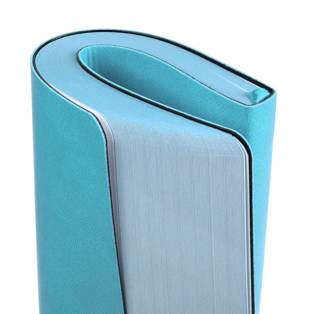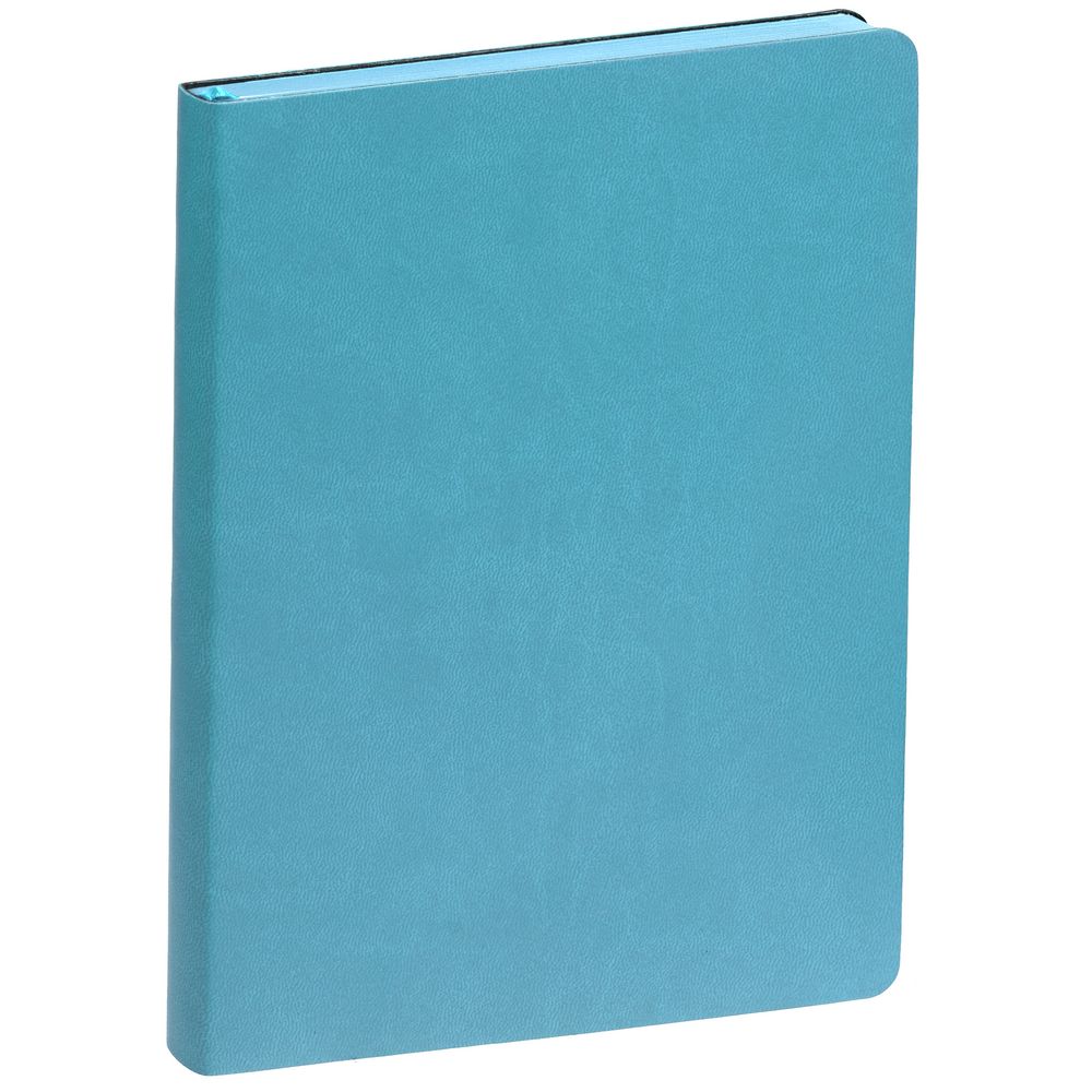 Ежедневник с гибкой обложкой, выполнен из материала Latte, голубой, дополнен ляссе в цвет обложки.