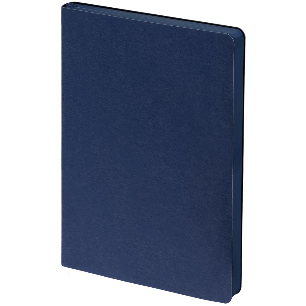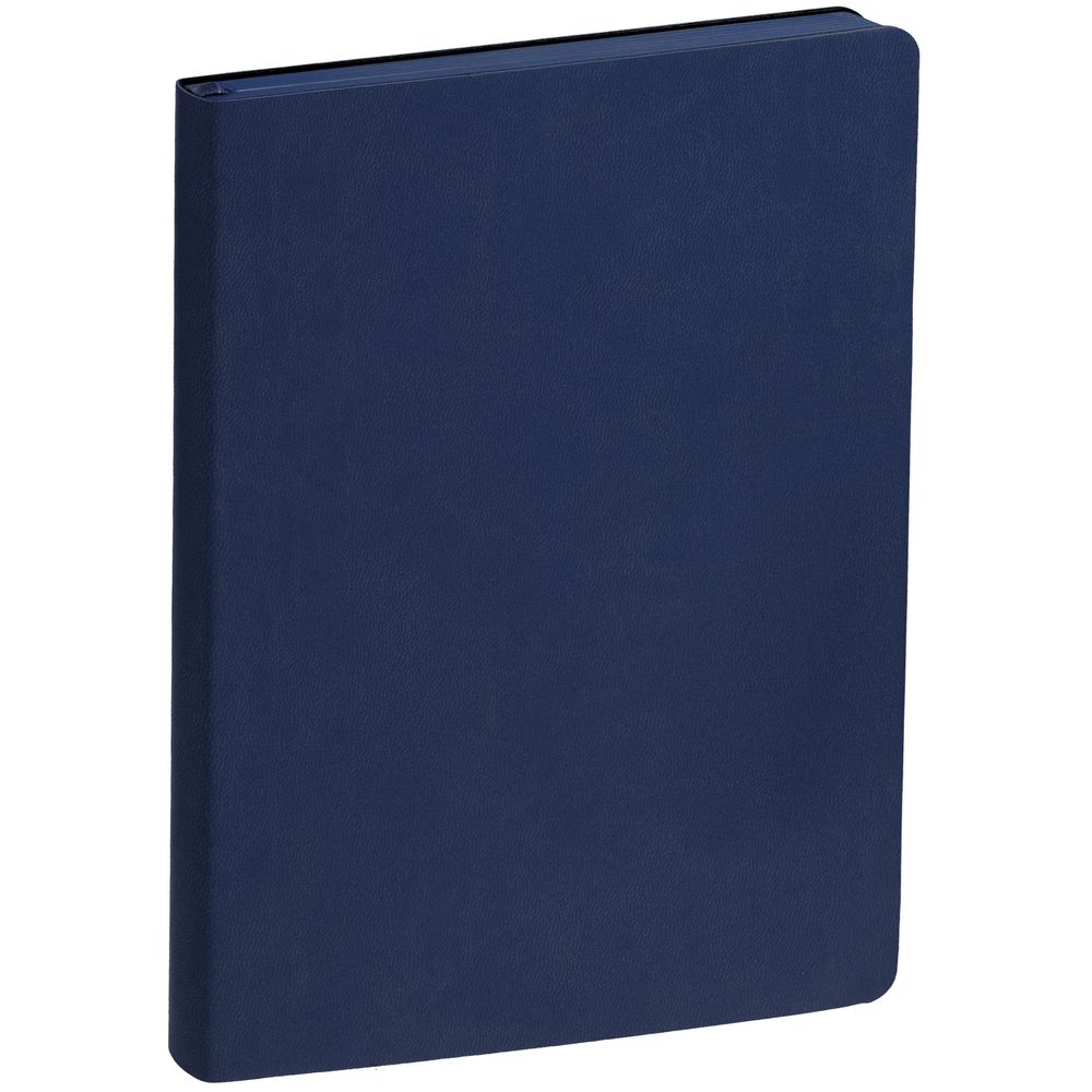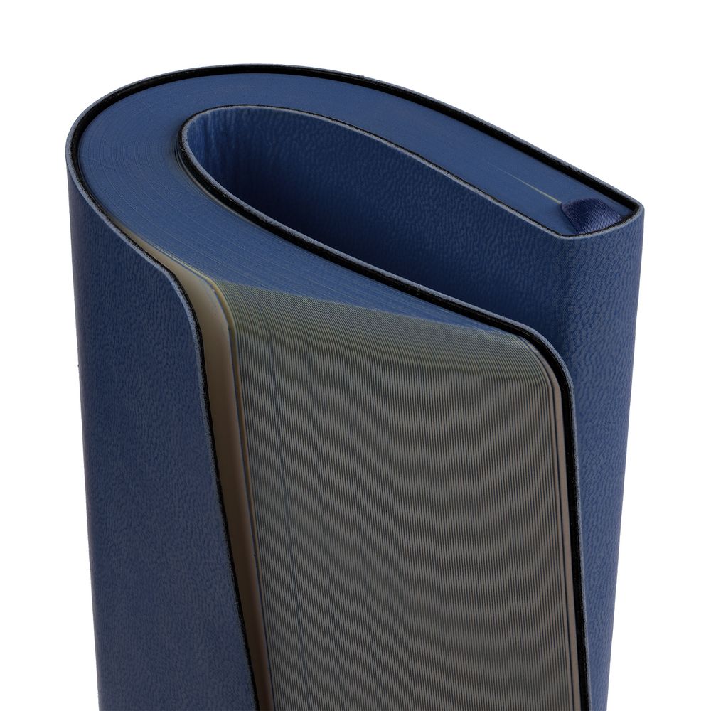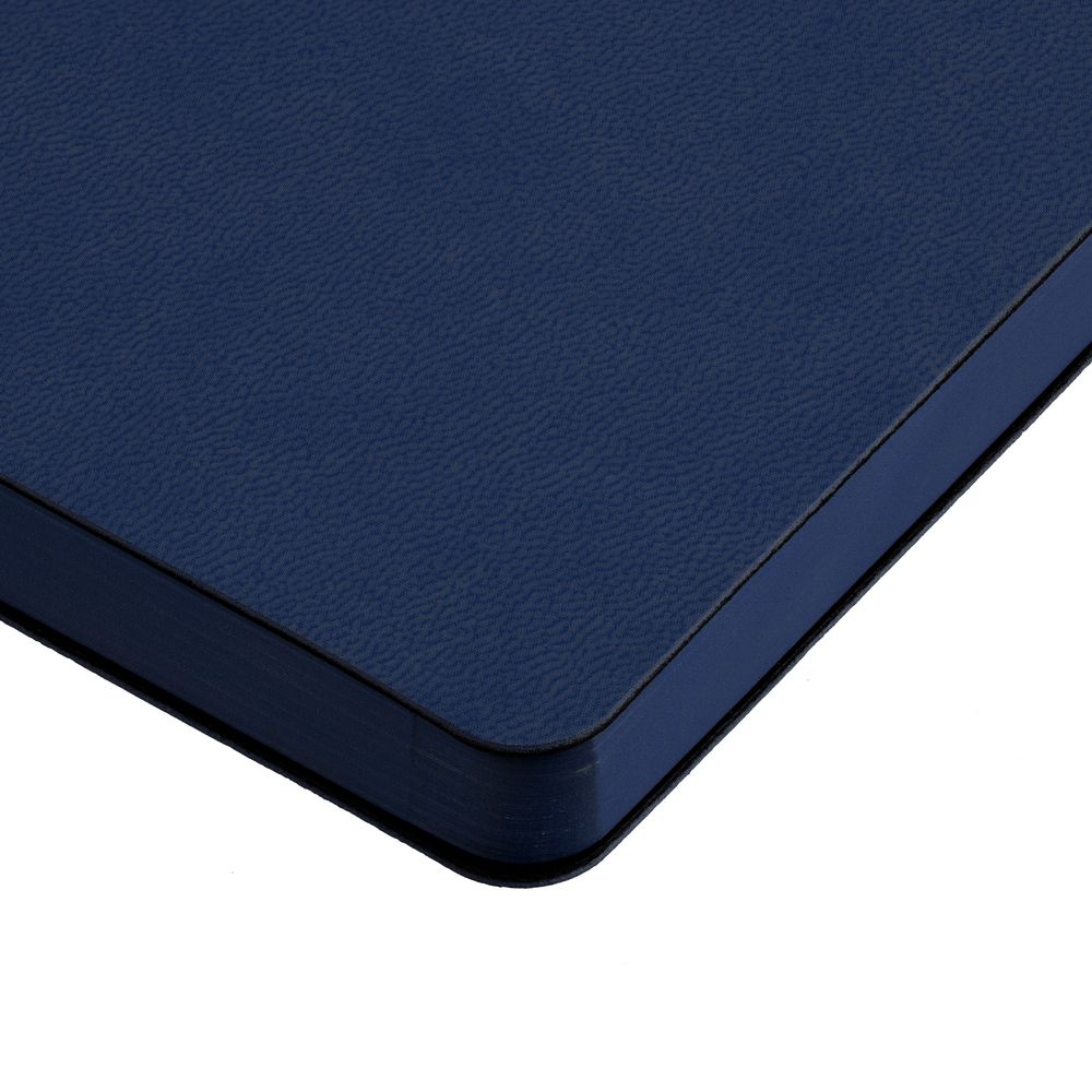 Ежедневник с гибкой обложкой, выполнен из материала Latte, темно-синий, дополнен ляссе в цвет обложки.