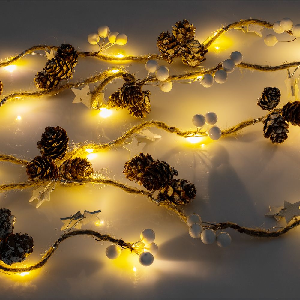 Одни из главных компонентов зимы и зимних праздников в стильном и милом оформлении гирлянды Cones and Berries — тот случай, когда детали решают все. Гирлянда актуальна и как самостоятельный вариант декора, и в качестве традиционного украшения елки.