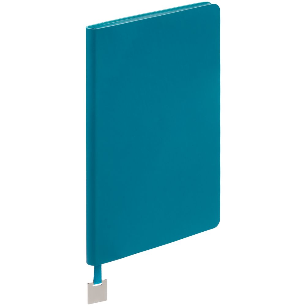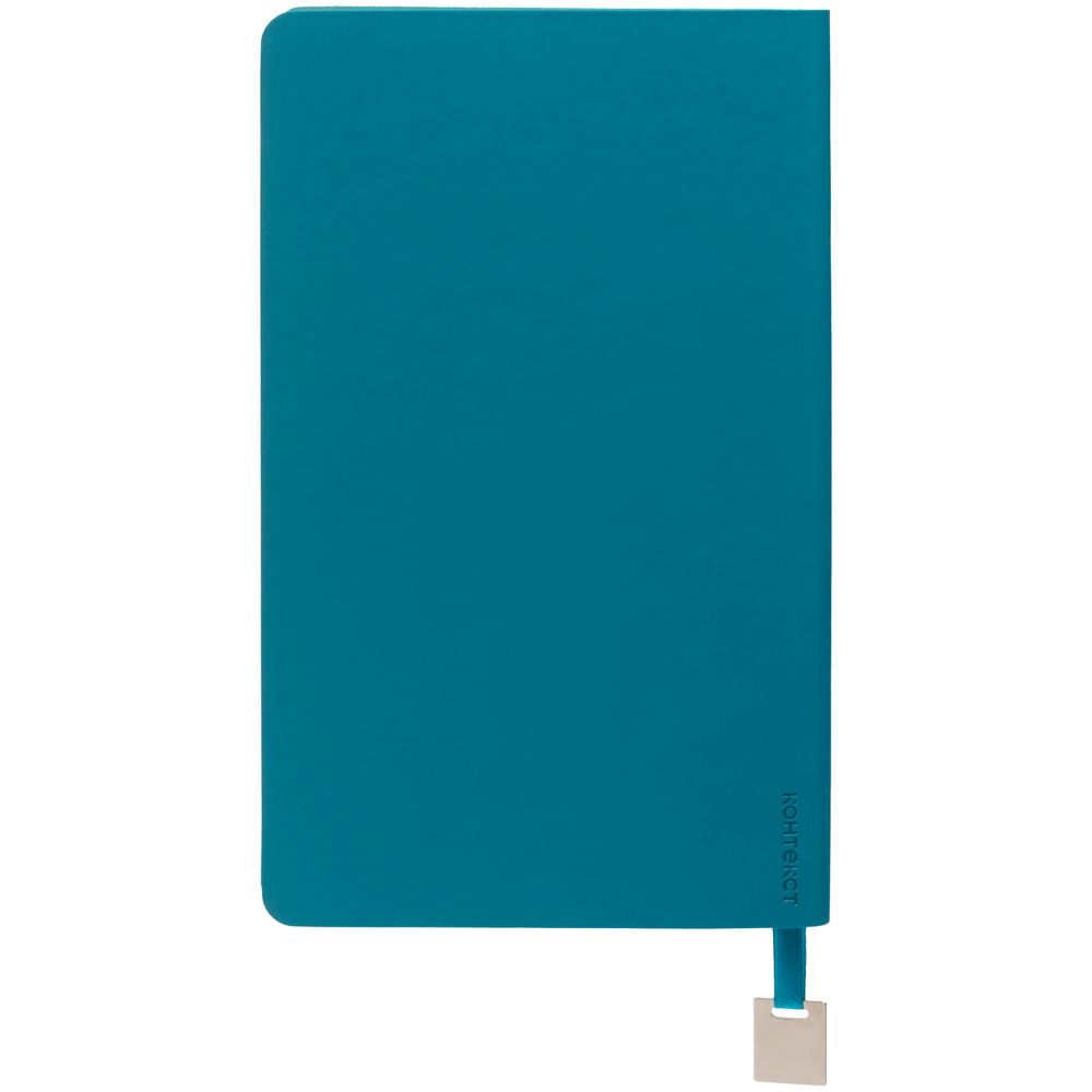 Ежедневник с гибкой обложкой, выполнен из материалов Soft Touch, цвет морской волны II, и Latte, цвет морской волны (внутренняя часть обложки), дополнен ляссе в цвет обложки с металлическим шильдиком.