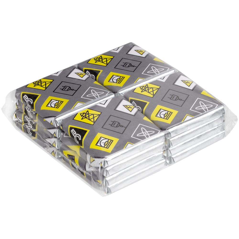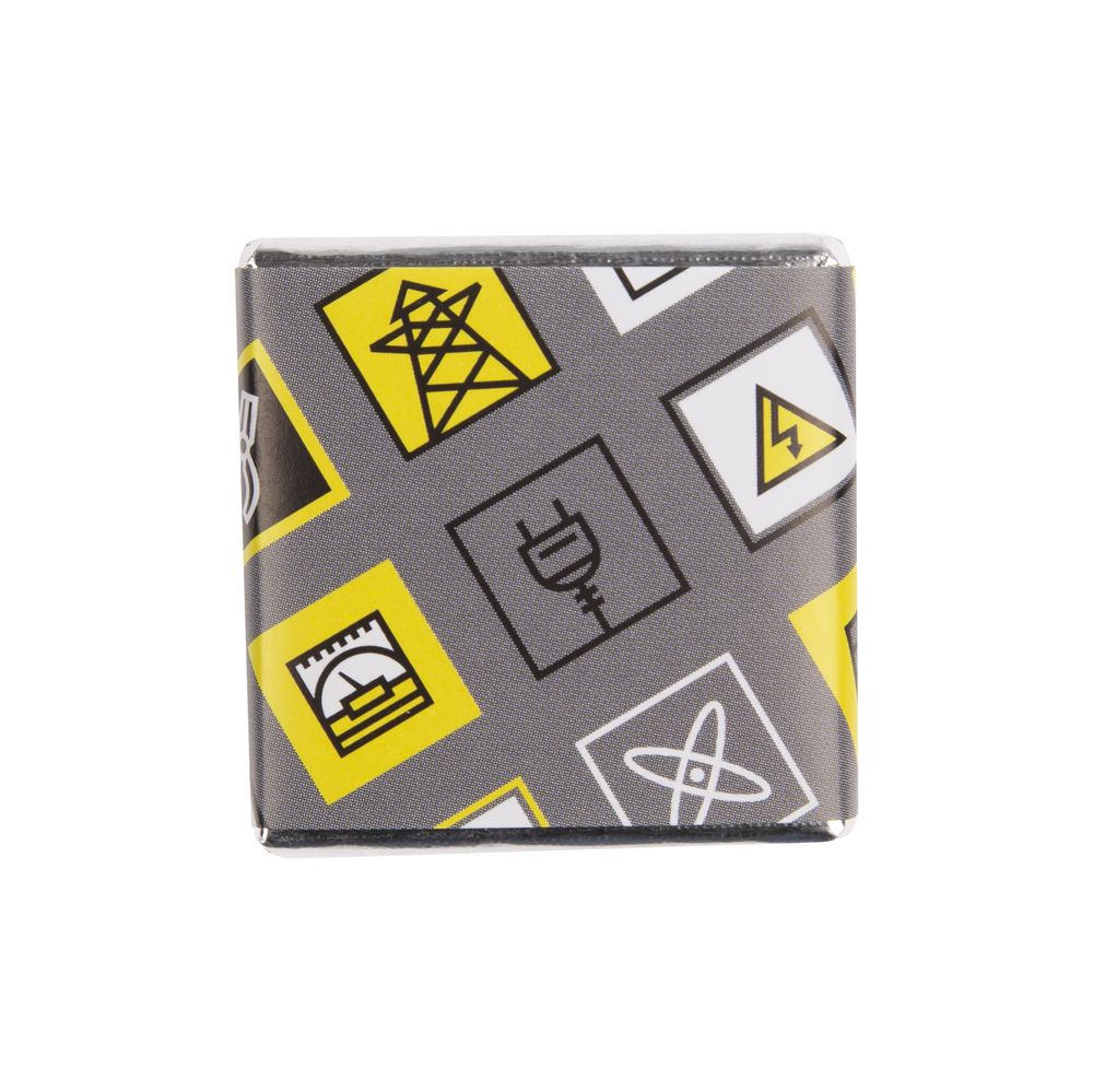 На обратной стороне каждой плитки изображены главные символы электроэнергетики. Шоколад горький, 60% какао. В набор входит 16 плиток по 5 г. Срок годности 12 месяцев.