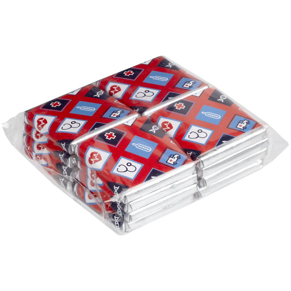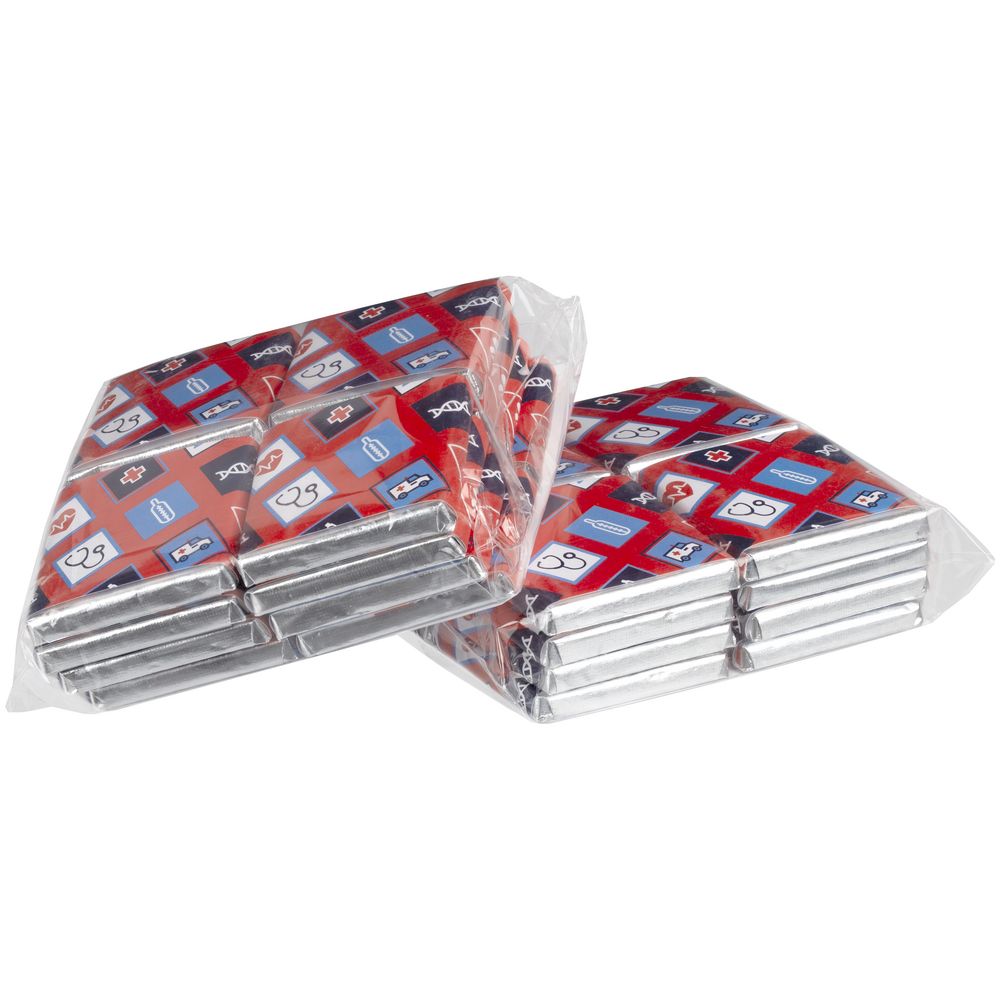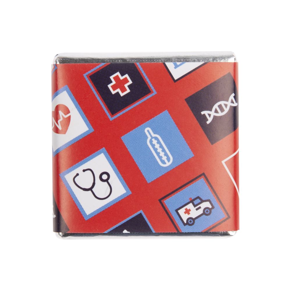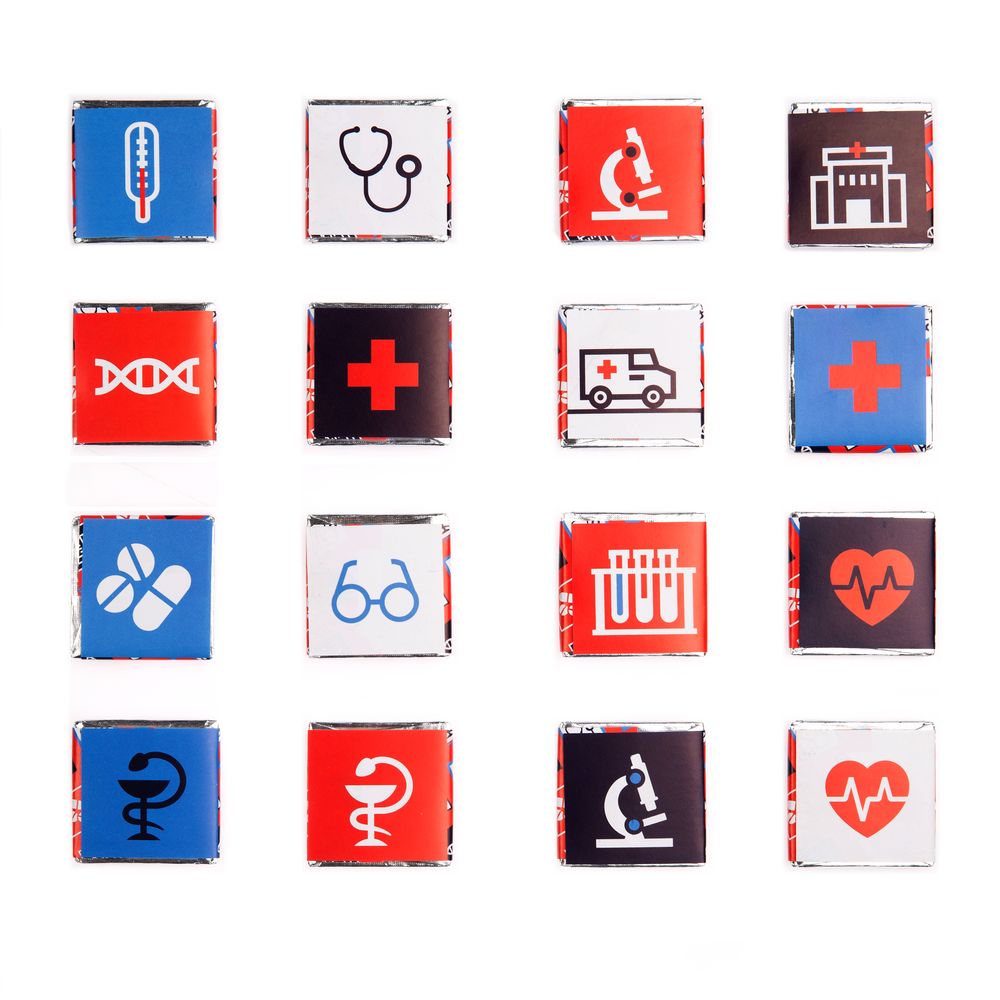 На обратной стороне каждой плитки изображены главные медицинские символы. Шоколад горький, 60% какао. В набор входит 16 плиток по 5 г. Срок годности 12 месяцев.