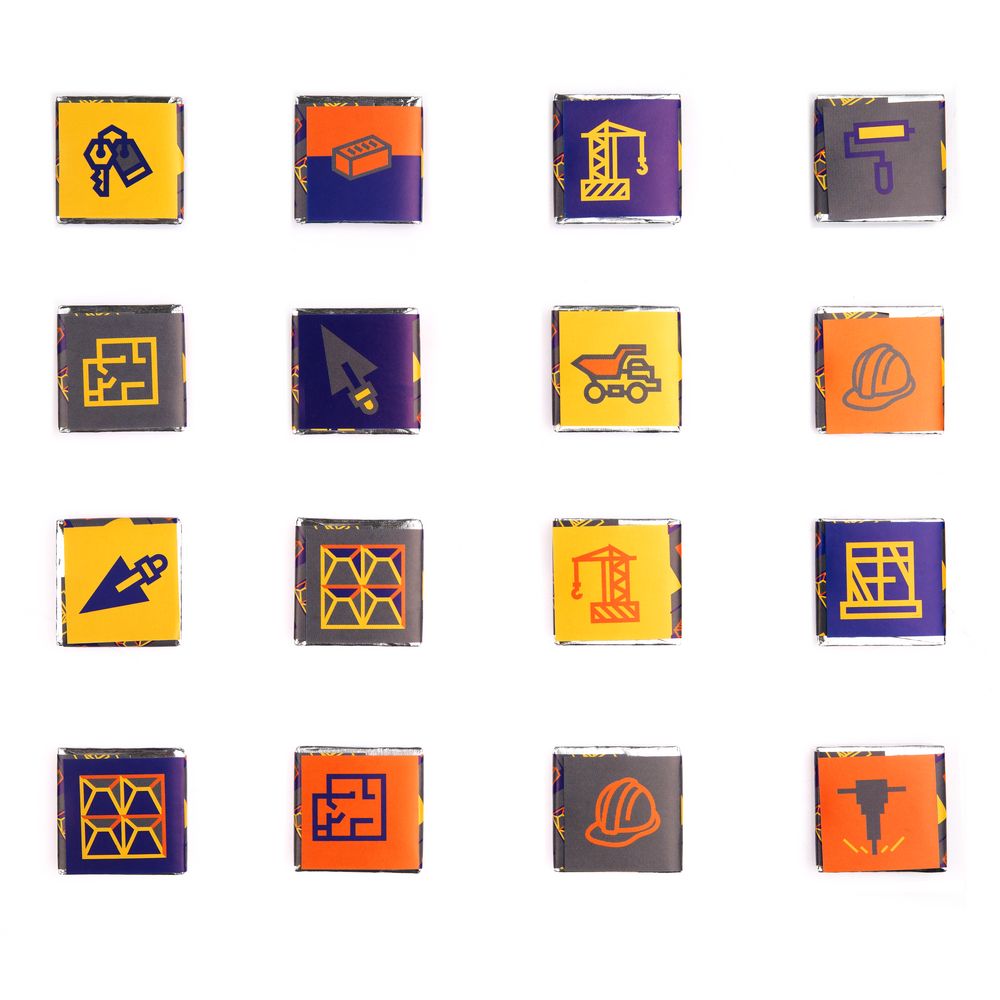 На обратной стороне каждой плитки изображены главные символы строительства. Шоколад горький, 60% какао. В набор входит 16 плиток по 5 г. Срок годности 12 месяцев.