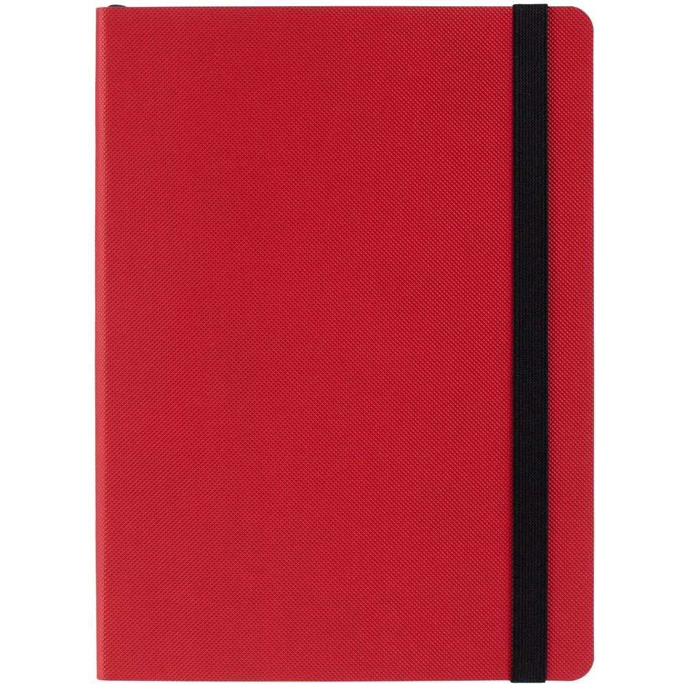 Еженедельник в гибкой обложке выполнен из материала Canyon, красный PP, дополнен резинкой и ляссе черного цвета.