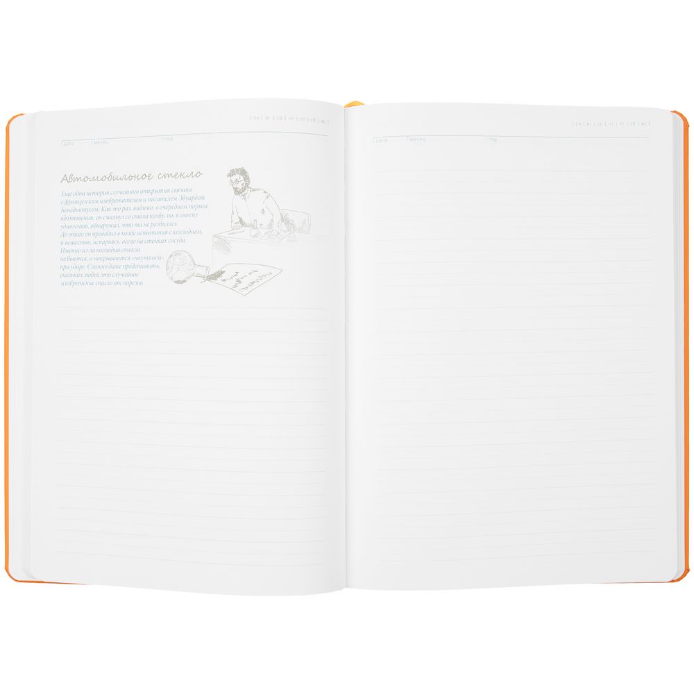 Этот ежедневник — и источник вдохновения, и собрание полезной информации для любознательных, и остроумное напоминание о том, какую роль в прогрессе цивилизации играет его величество Случай. Разумеется, когда ему на помощь приходят Упорство и Трудолюбие. Обложка ежедневника из материала Soft Touch. На корешке обложки выполнено блинтовое тиснение, обложка дополнена вырубкой с печатью на бумаге и полимерными наклейками под смолой. Индивидуальный блок, 256 стр., белая бумага.