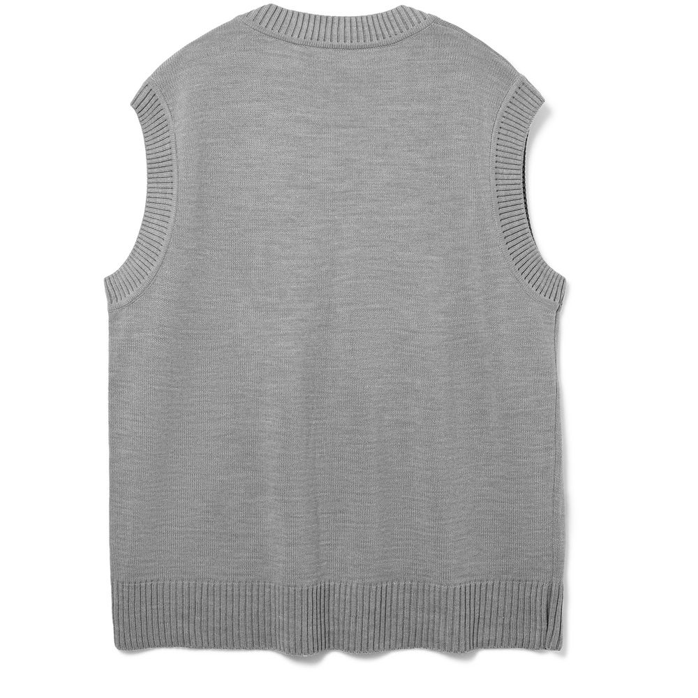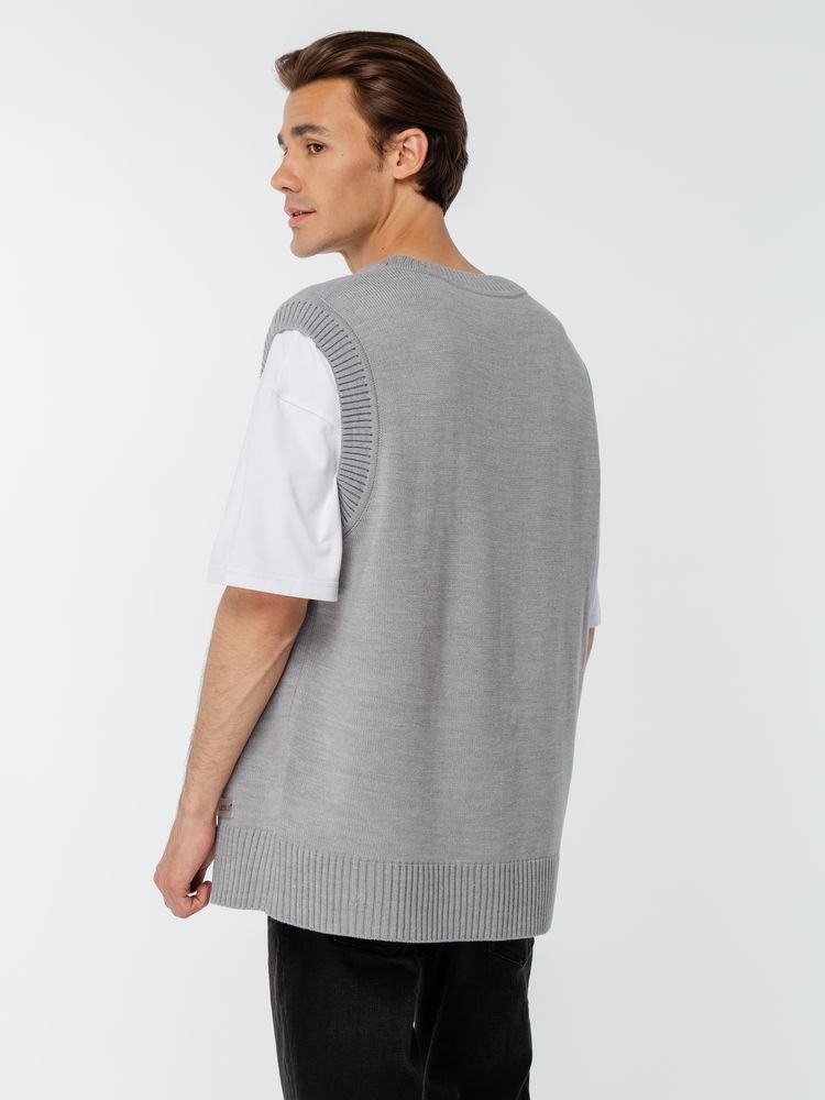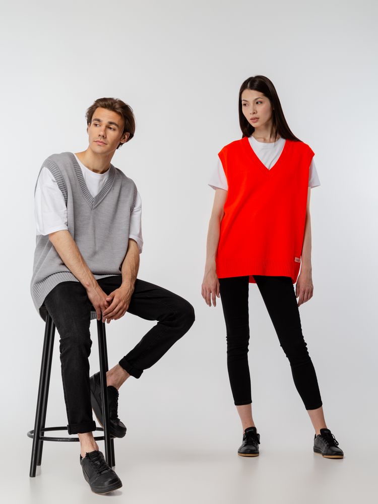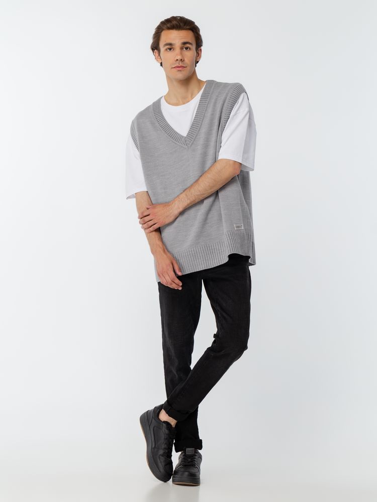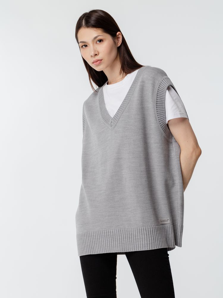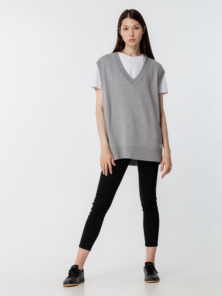Простой по вязке однотонный жилет с посадкой гипероверсайз и широкой резинкой в тон по проймам и вороту станет стильным дополнением к базовой капсуле и порадует любителей максимализма в одежде. Воплощение комфорта и эстетики. Однотонный оверсайз жилет с V-образным вырезом.