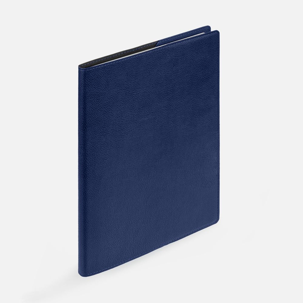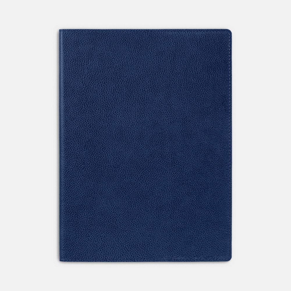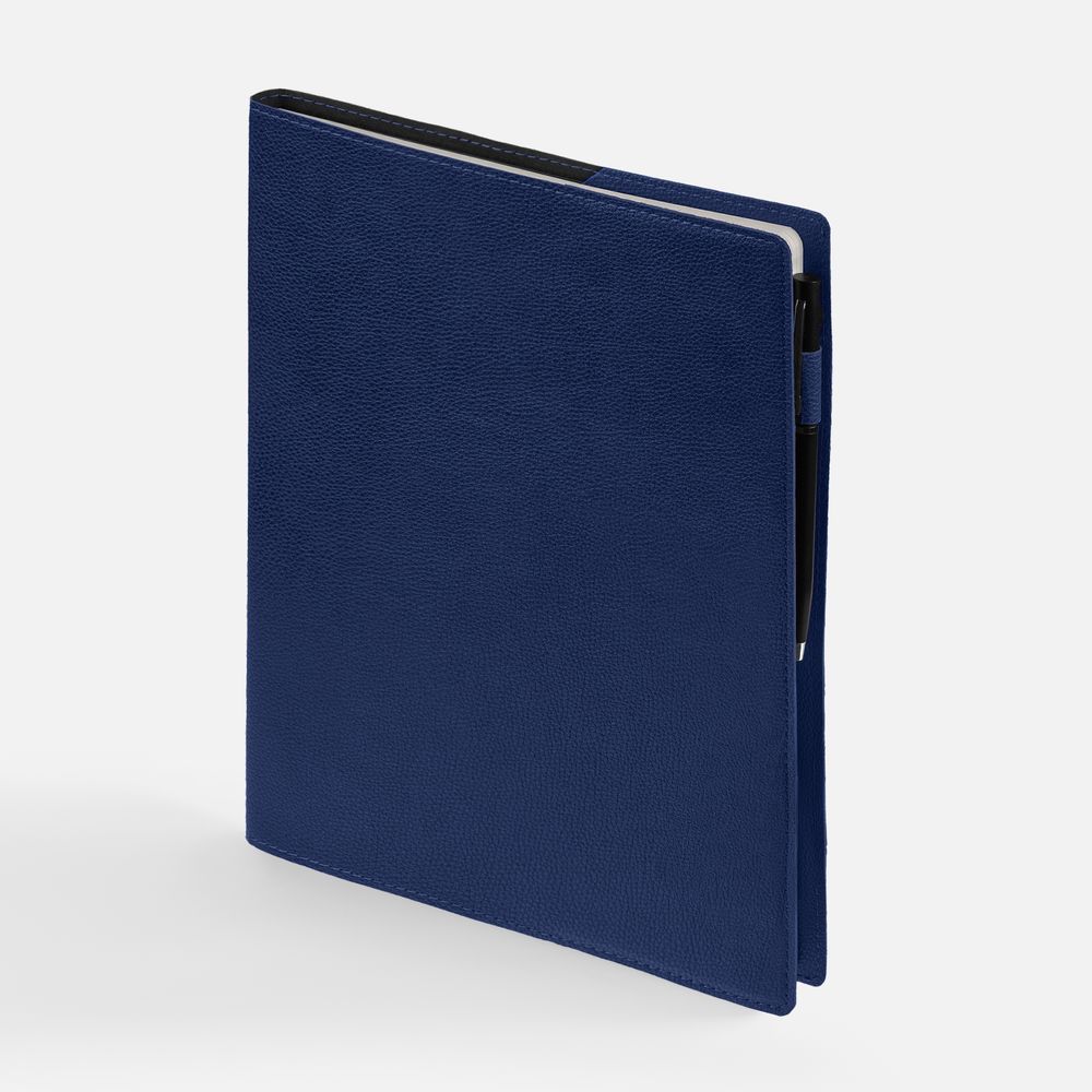 Ежедневник в суперобложке выполнен из материала La Fite, синий НН, дополнен ляссе и капталом черного цвета.