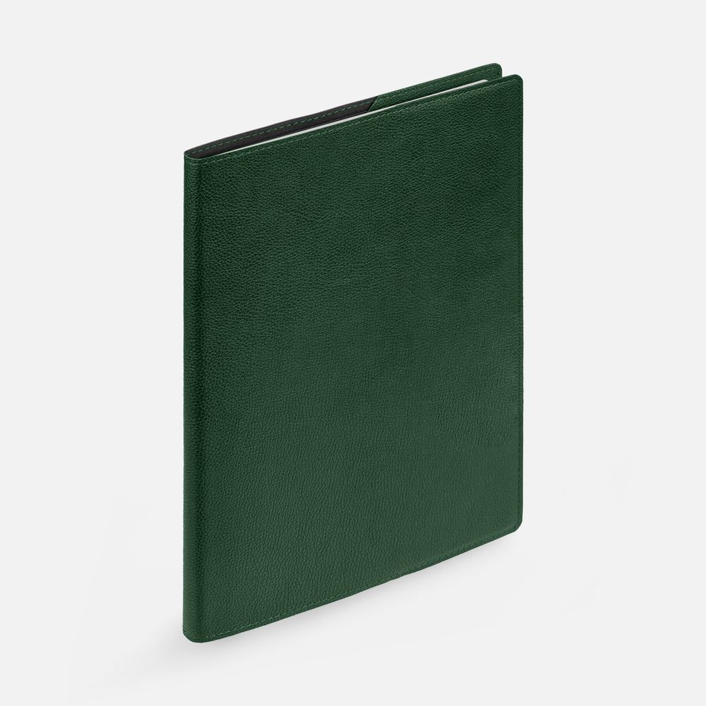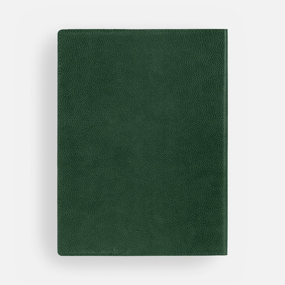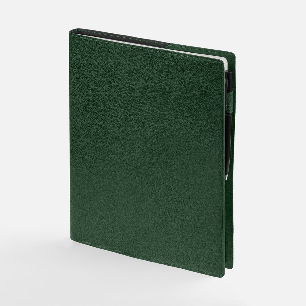 Ежедневник в суперобложке выполнен из материала La Fite, зеленый FF, дополнен ляссе и капталом черного цвета.