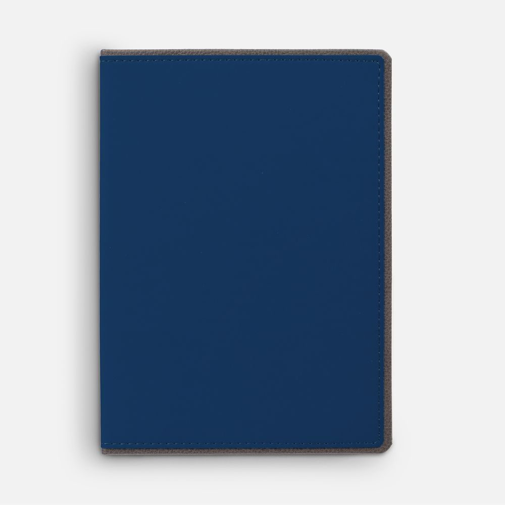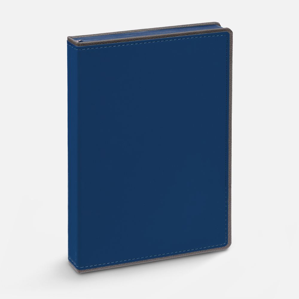 Ежедневник с твердой обложкой, выполнен из материалов Soft Touch Ultra, синий НН и La Fite, серый СС. Ляссе темно-серого цвета.