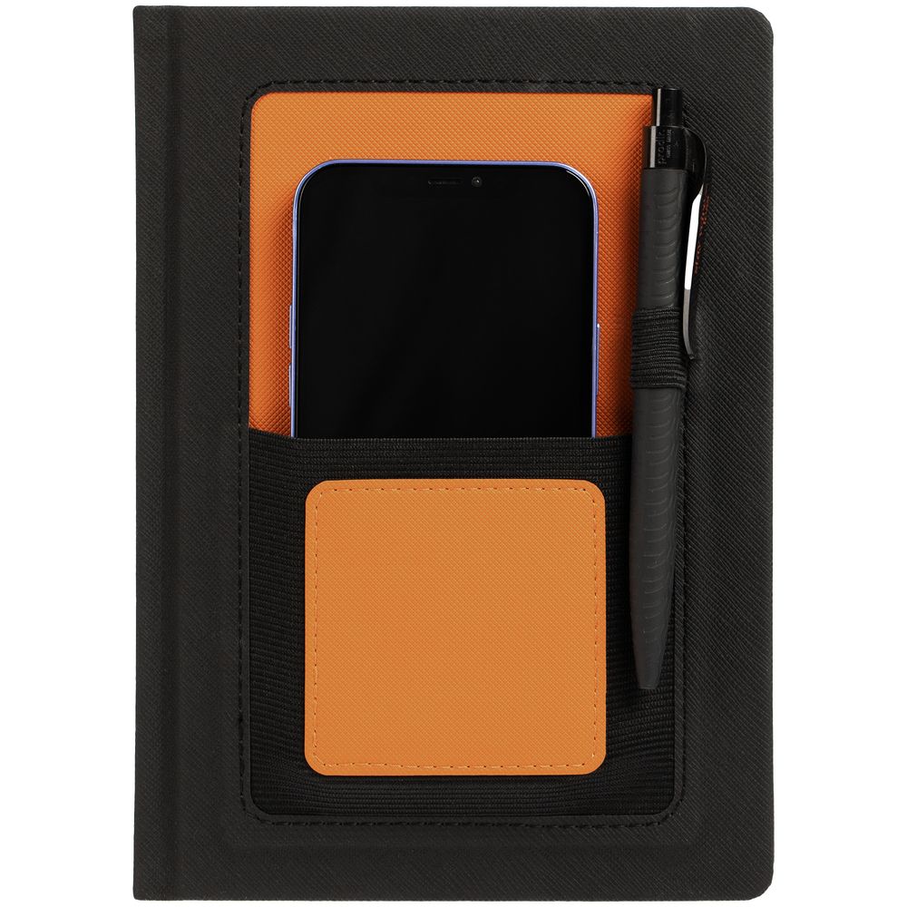 Ежедневник с карманом шириной 10 см из резинки, в котором удобно разместить мобильный телефон или визитки для переговоров.