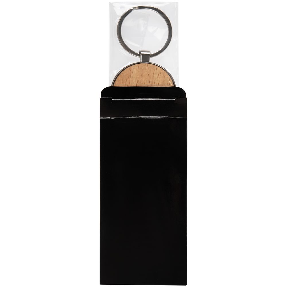 Металлический брелок-медальон со вставкой из натурального дерева. Подойдет для клиентов, отдающих предпочтение качественным натуральным материалам. Поставляется в индивидуальной упаковке.