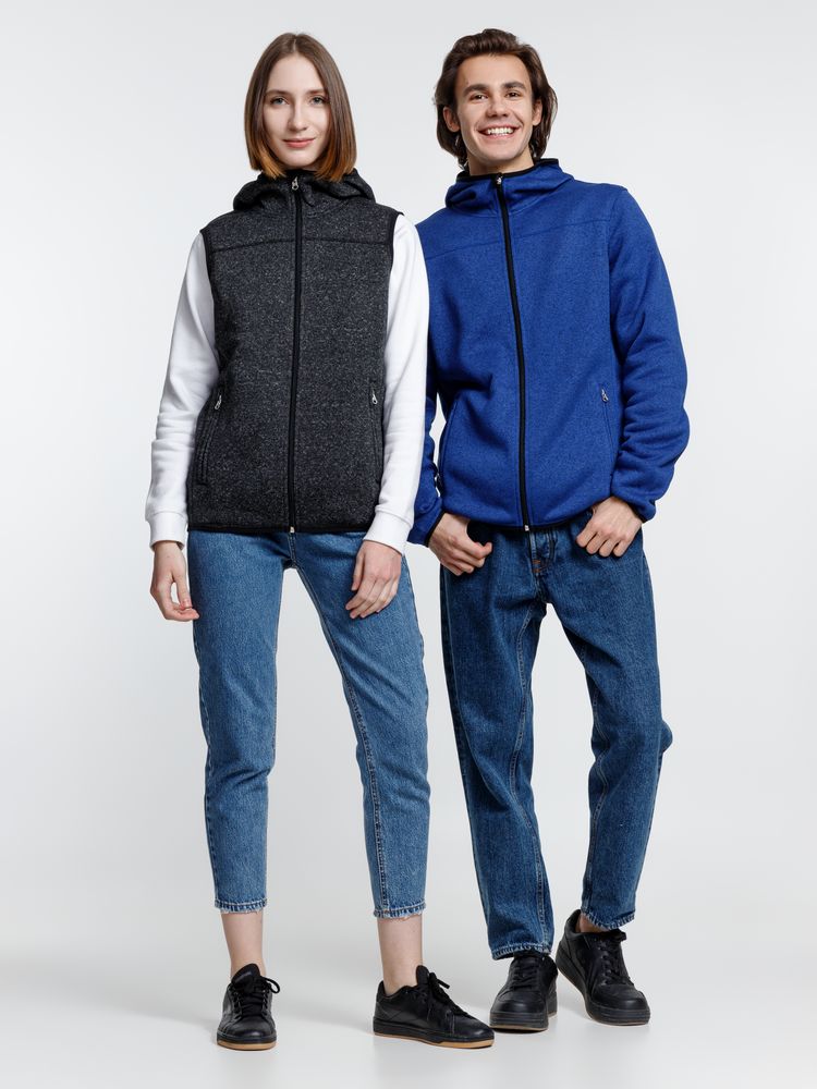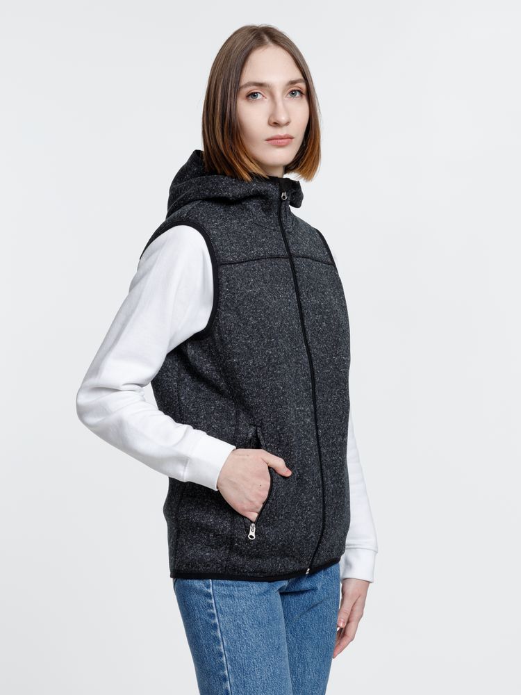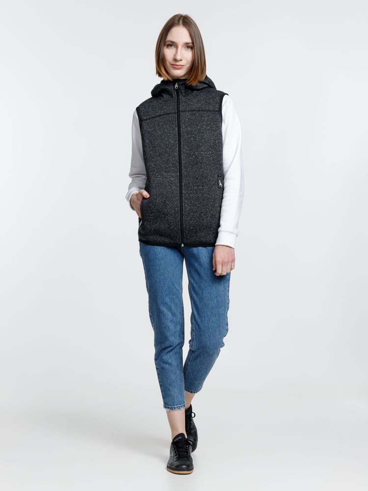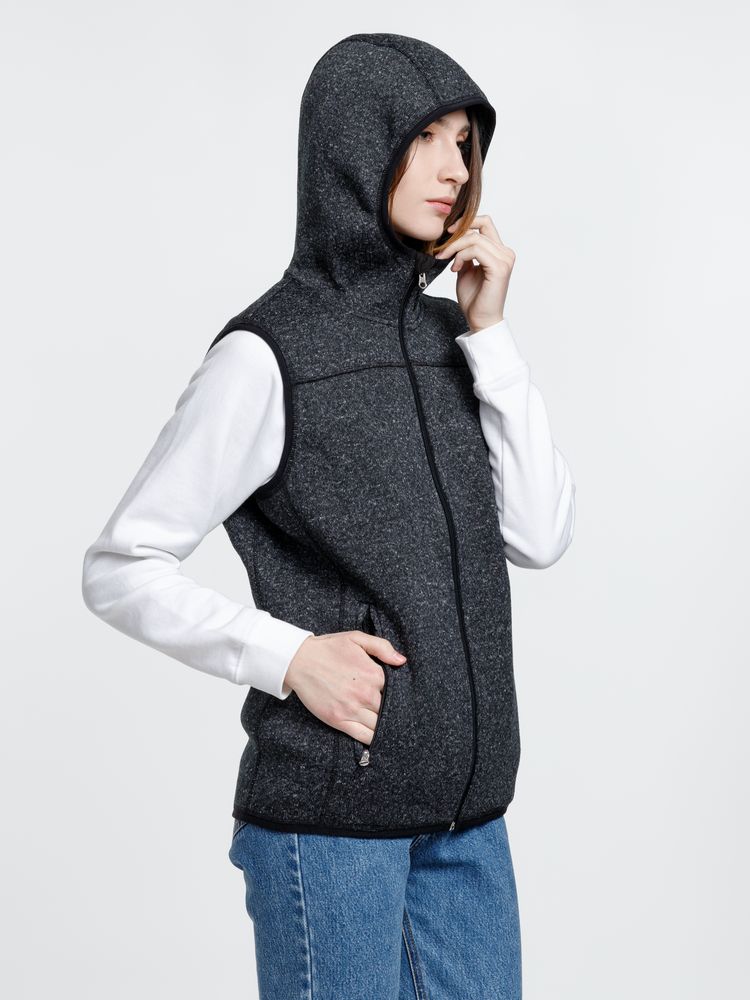 Меланжевый эффект ткани и контрастная отделка выигрышно подчеркивают расслабленный casual стиль, а продуманные детали кроя гарантируют идеальную посадку по фигуре. Благодаря плотному трикотажному материалу с изнанкой из мягкого флиса жилет Gotland в разное время года будет уместен в качестве среднего слоя или верхней одежды — на прогулке или в небольшом походе. Комфорт и тепло обеспечены! Вязаный жилет унисекс на молнии с капюшоном.
